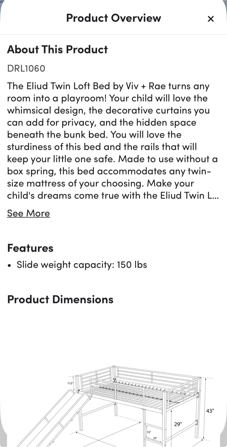 The bed is sturdy and includes safety rails to help keep your child secure while sleeping. Designed to be used without a box spring, it fits any standard twin-size mattress.