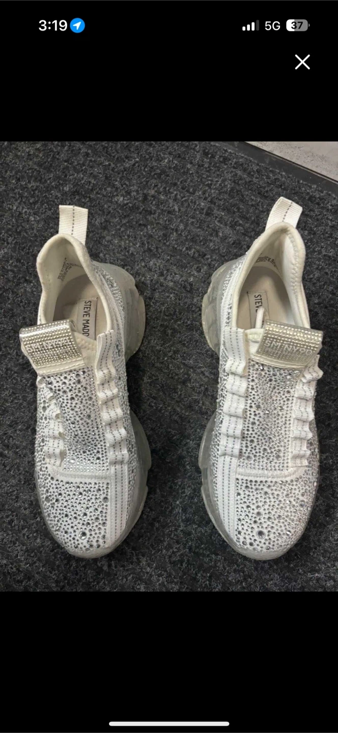 Steve Madden White Rhinestone Slip-On Sneakers