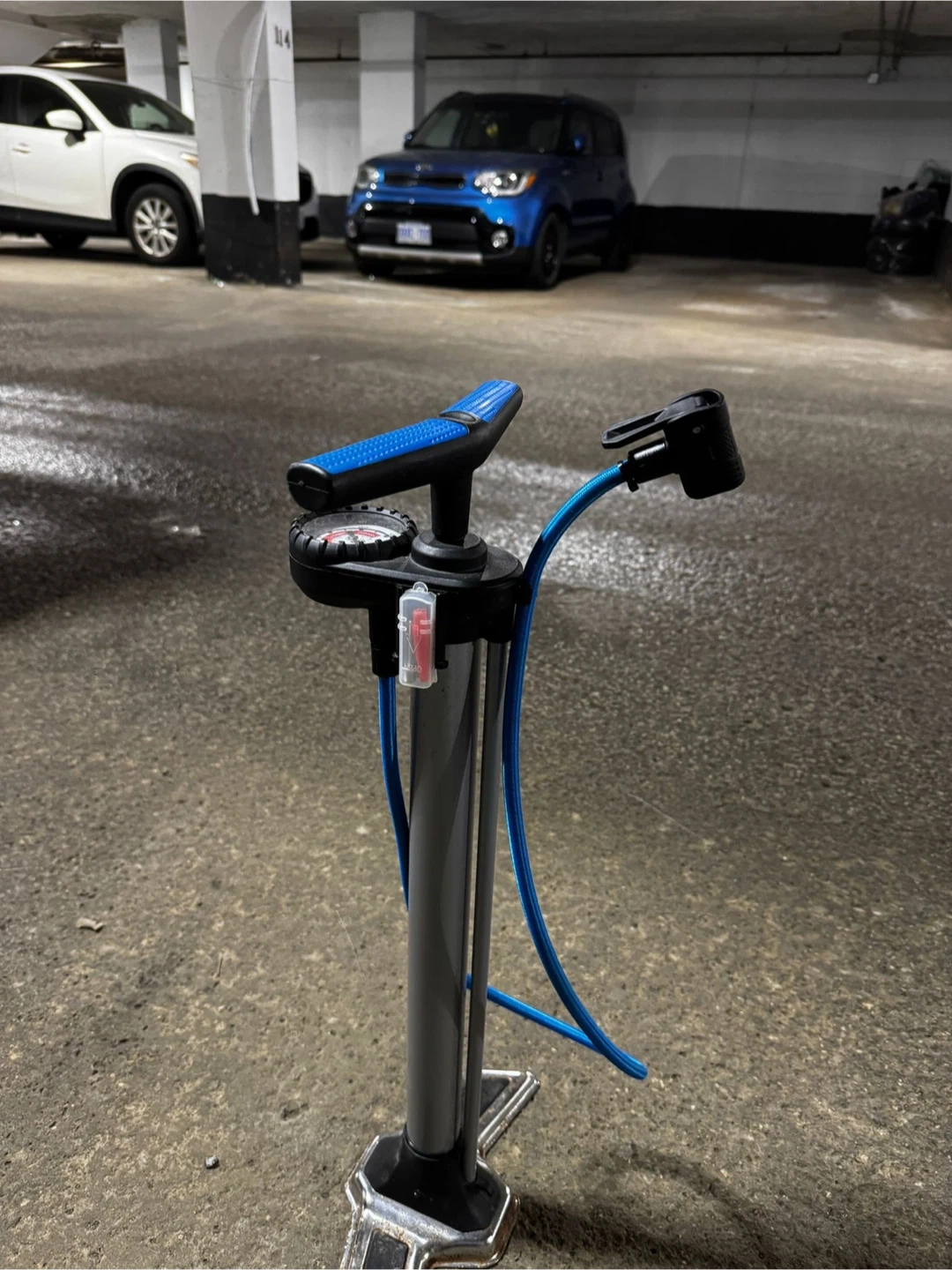 This Schwinn floor pump is great for keeping your bike tires inflated. It features a built-in pressure gauge so you can easily check your tire pressure. The stable base and comfortable handle make pumping quick and easy.
