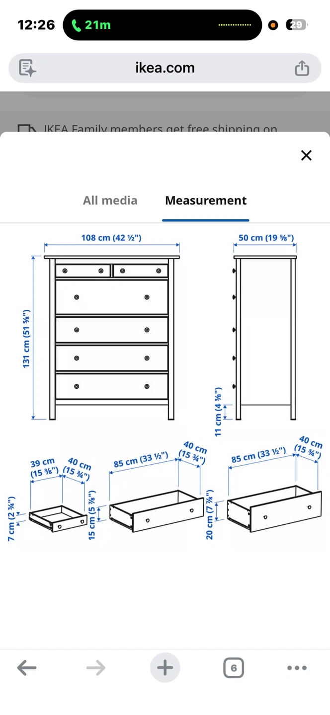 IKEA HEMNES 6 Drawer Dresser