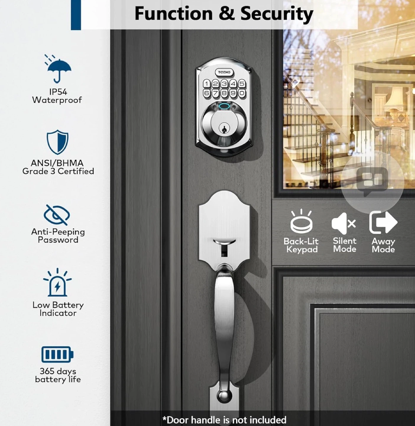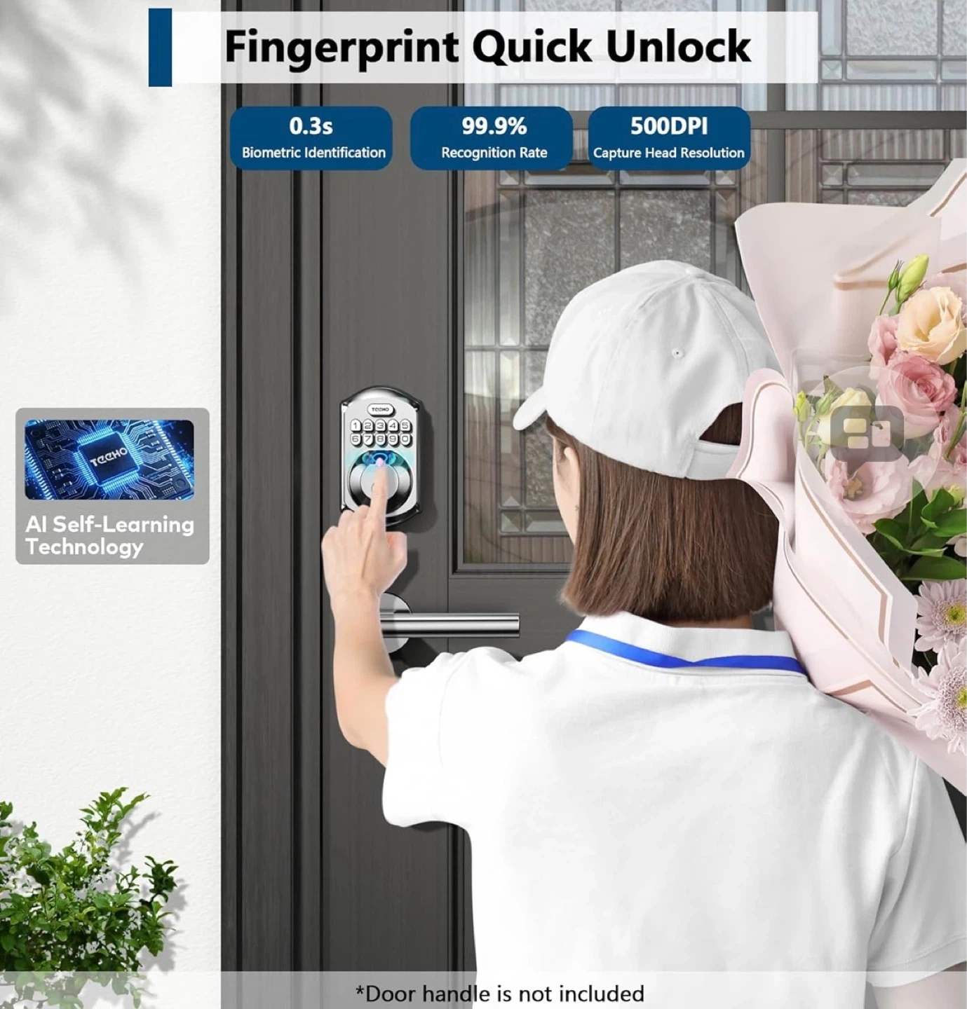 TECHO Smart Door Lock with Keypad and Fingerprint Scanner