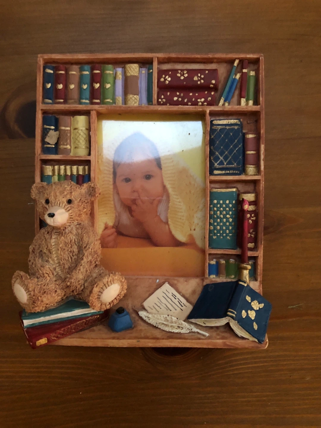 24This is a cute Elby Gifts picture frame with a bookshelf design. It's perfect for displaying your favourite photos! Holds a 2x3 photo