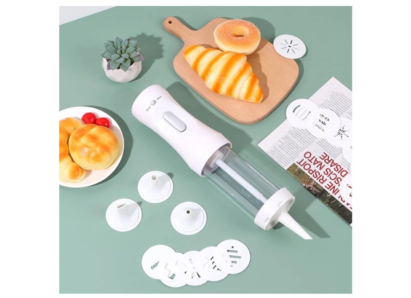 *CASH Only* Brand New This multifunctional electric cookie press set comes with 12 cookie discs and 4 icing nozzles. You only need to install 4 AA batteries (not included) inside the machine to create different shapes of desserts or biscuits as you like. [Check Out My Other Listings]