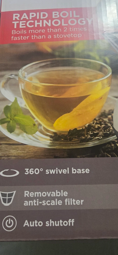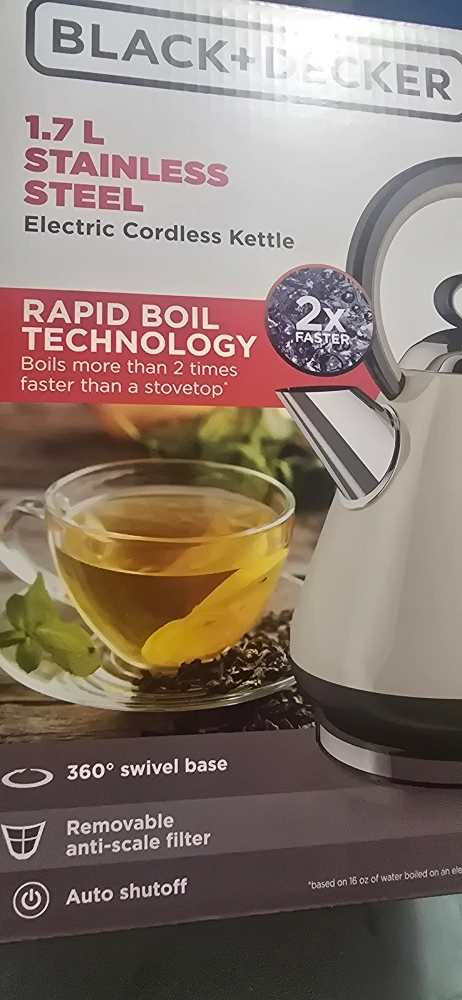 80Electric cordless kettle. Stainless steel design. Features rapid boil technology. Swivel base and auto shutoff are included. You could enjoy a nice cup of tea, made with this kettle, after a long day. check my other items cash or cashless payment accepted