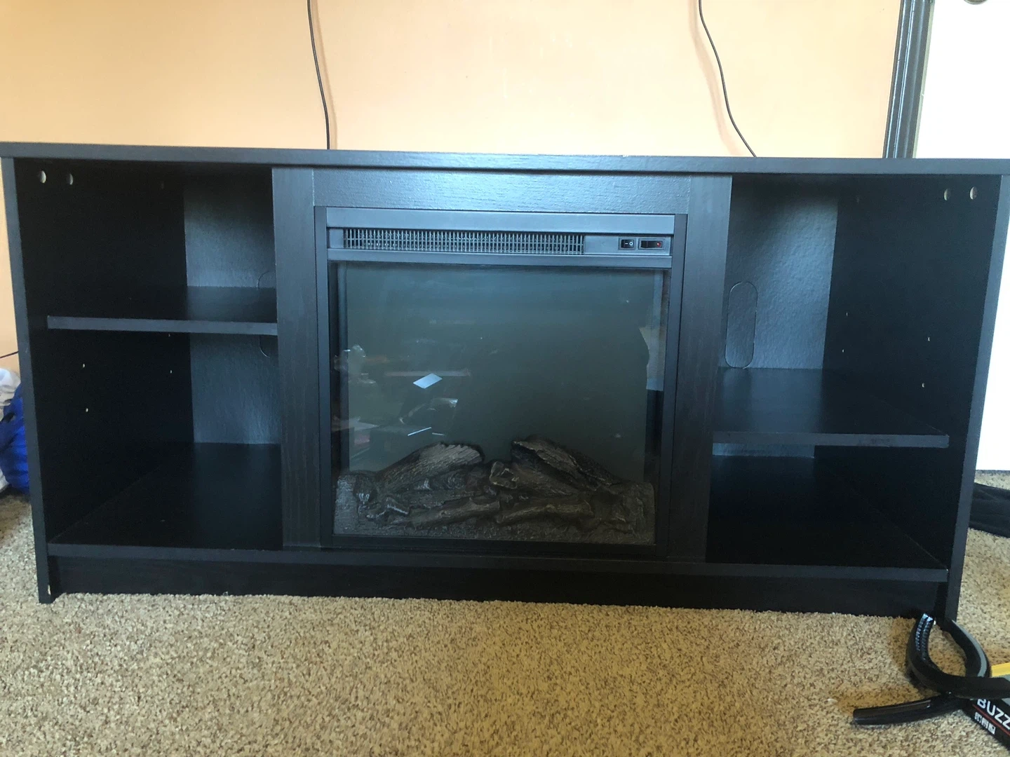 Bought for $375. Only 2 years old we rarely used it. Selling a electric fireplace. It's a great addition to any living room, providing both storage and a cozy atmosphere. The stand features shelving on either side of the fireplace, perfect for storing media or displaying decor. It's in good condition and ready for a new home!