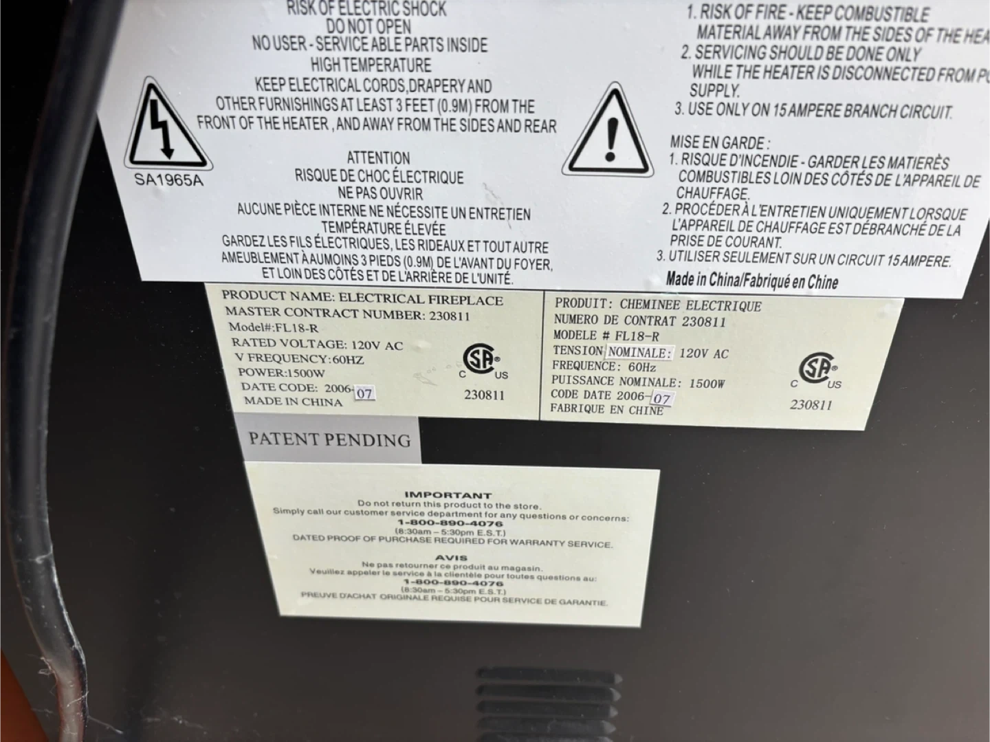 106EUC, mainly kept in storage. No longer needed since new heaters were installed. 42"x 13.5"x40" Rated Voltage: 120V AC Frequency: 60Hz Power: 1500W