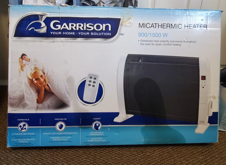 48Electric heater with digital display 900/1500w Micathermic Heater 2 power settings - low 900w / high 1500w slim for small spaces auto shut off instructions and accessories included