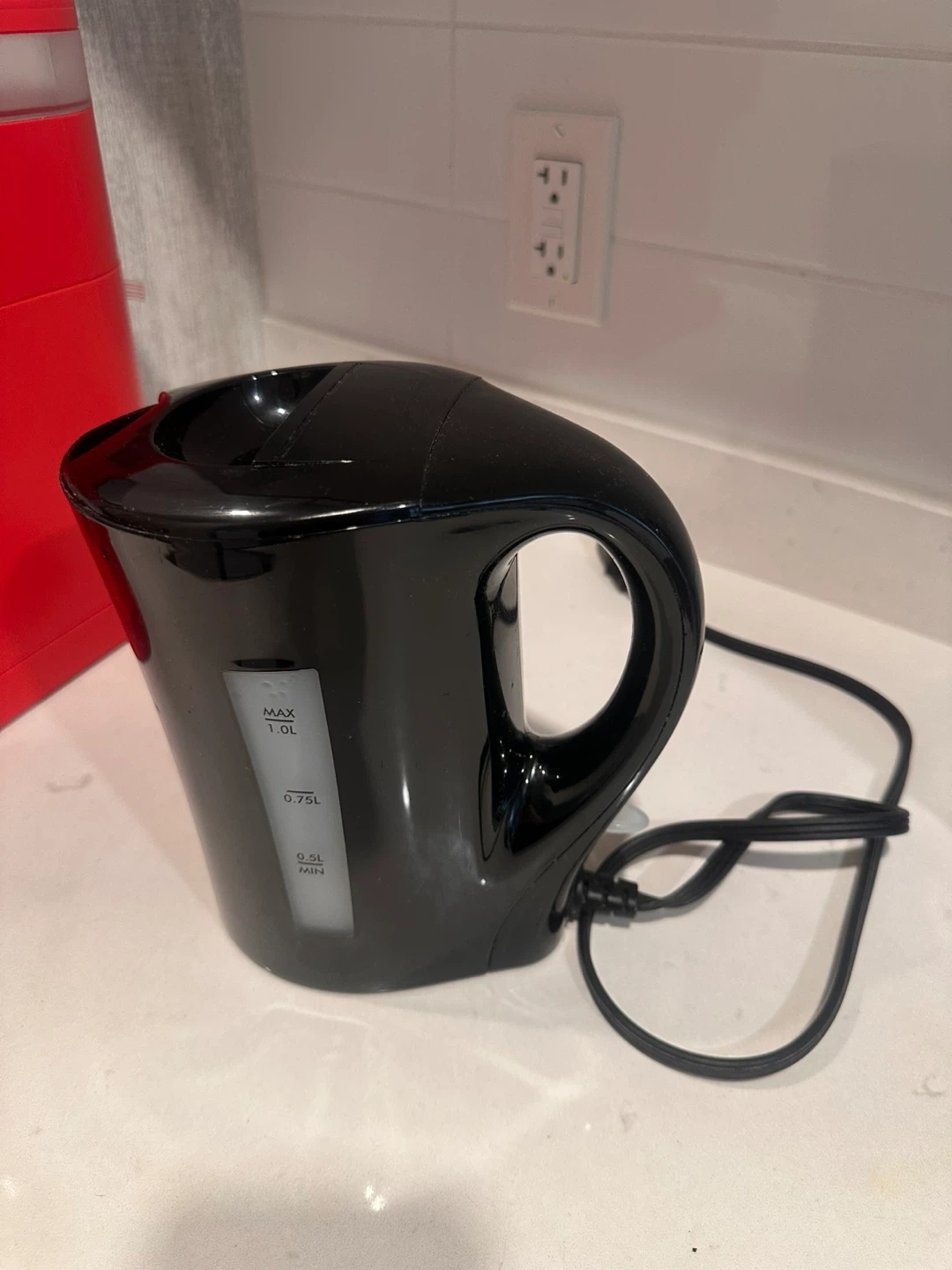 10Selling a black Everyday Essentials kettle. It has a 1L capacity and a visible water level indicator. It also features automatic shut-off function for safety In a great condition and clean from inside with no limescale from inside. Fixed price and only available for pick up.