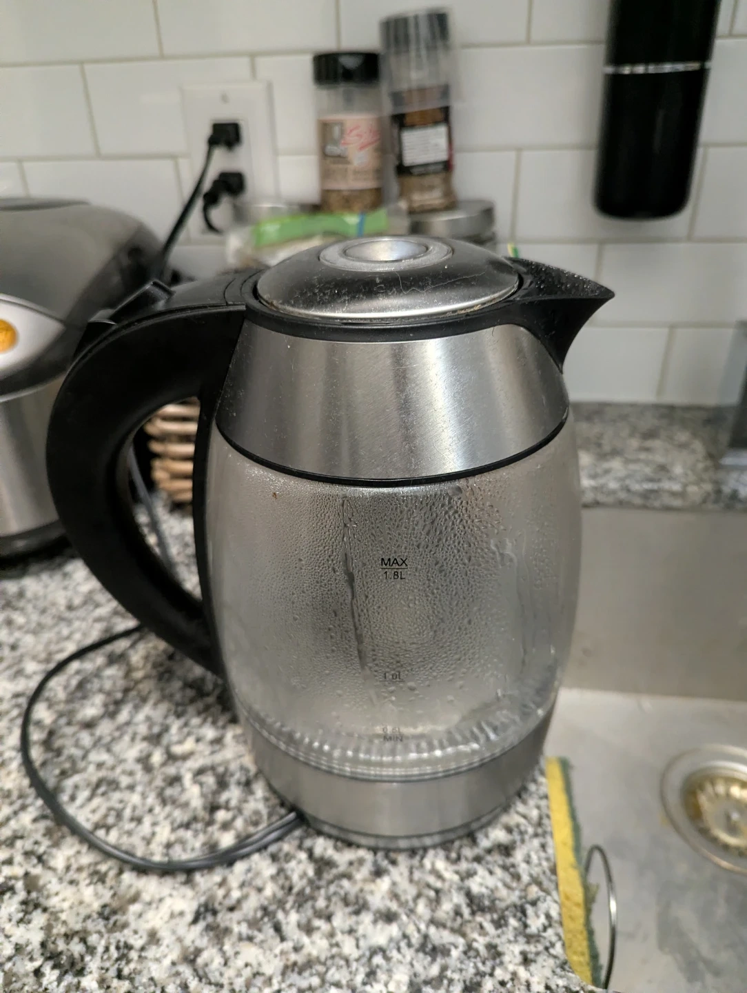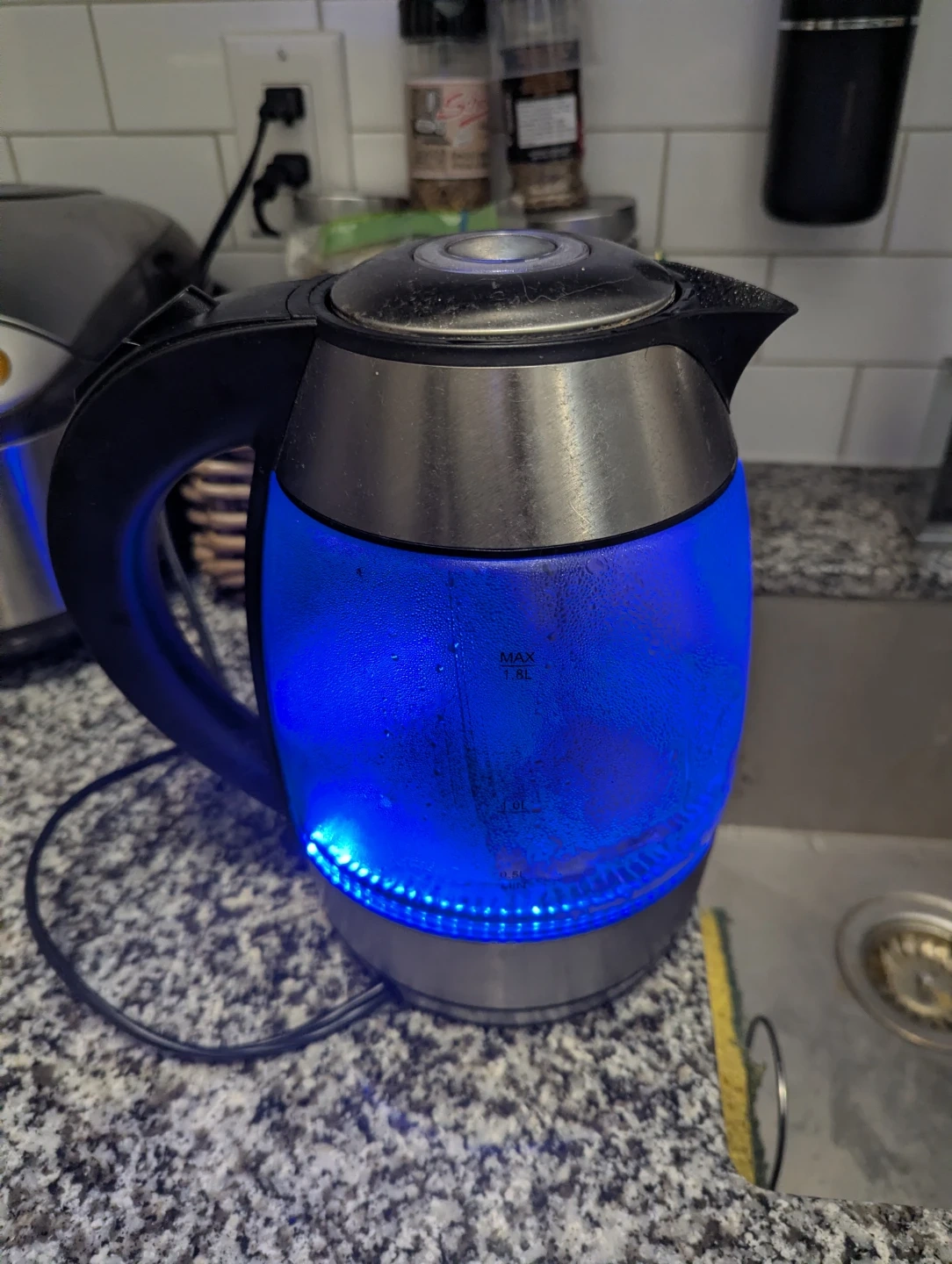 1000+Selling a used electric kettle in good condition. It lights up blue when in use and has a max capacity of 1.8L. Perfect for making tea or coffee quickly! Pick up only