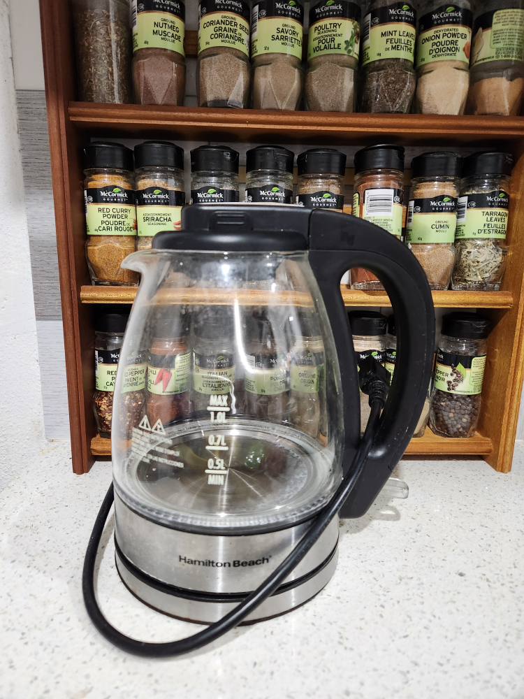 1000+Hamilton Beach Electric Kettle in working condition. I don't drink tea anymore, so no need!