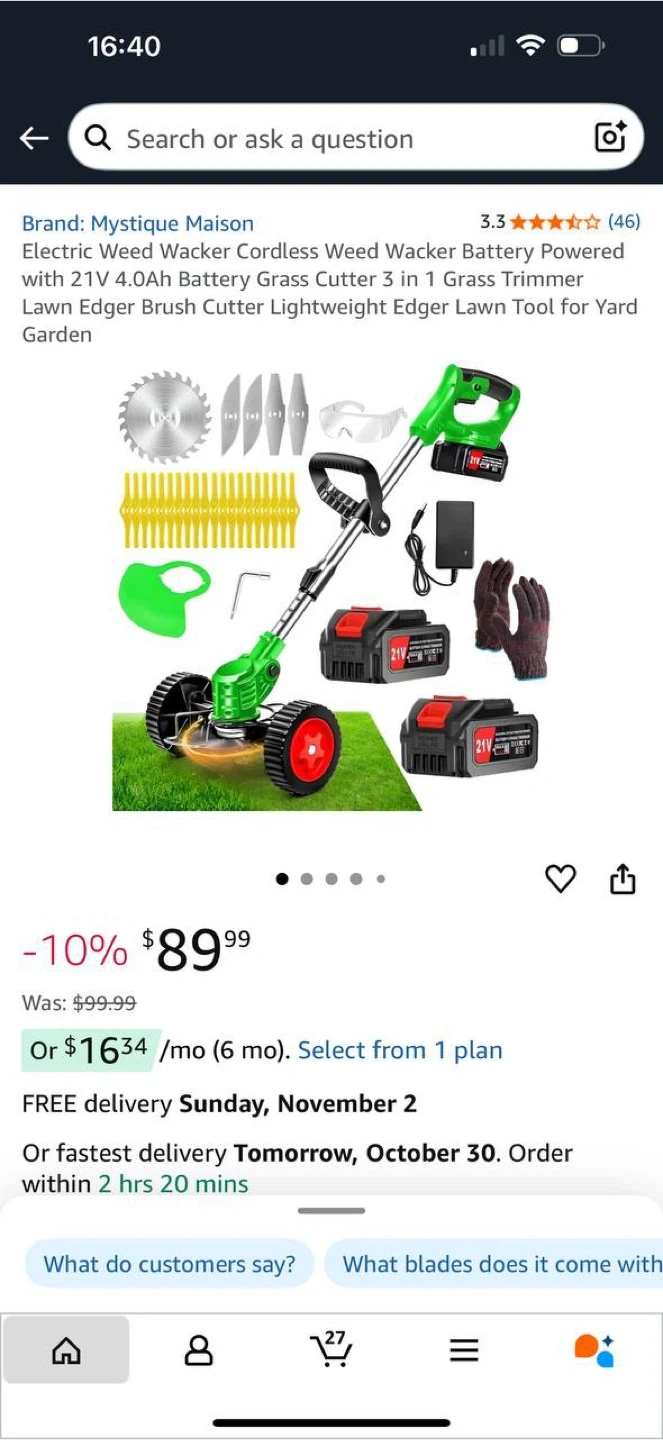 25🌿 Electric Weed Wacker 21V (with Wheels) – Open Box $70 ✅ Condition: Open Box, never used 🔋 Includes 2x 4.0Ah batteries, charger, metal & plastic blades, safety glasses, gloves, and tools 🚜 Upgraded version with wheels – easier trimming and edging for lawns and gardens 💨 Lightweight and cordless design for easy movement and powerful performance 💚 Tested – works perfectly. Full set, just opened for inspection. 📍Pickup in Waterloo 🚗 Delivery possible nearby 👉 See my other listings for more great deals!