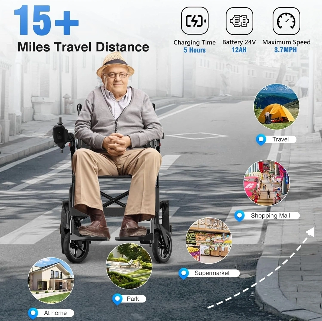 New and Unused Can Deliver! Selling an electric wheelchair that's perfect for getting around! It's foldable, making it easy to transport and store. Key features include: - 500W motor - 360° flexible joystick for easy steering - Collapsible design for portability - Load-bearing range of 350 lbs It's designed to be suitable for different body shapes and can climb 12-degree inclines. The travel distance is 15 miles on a single charge