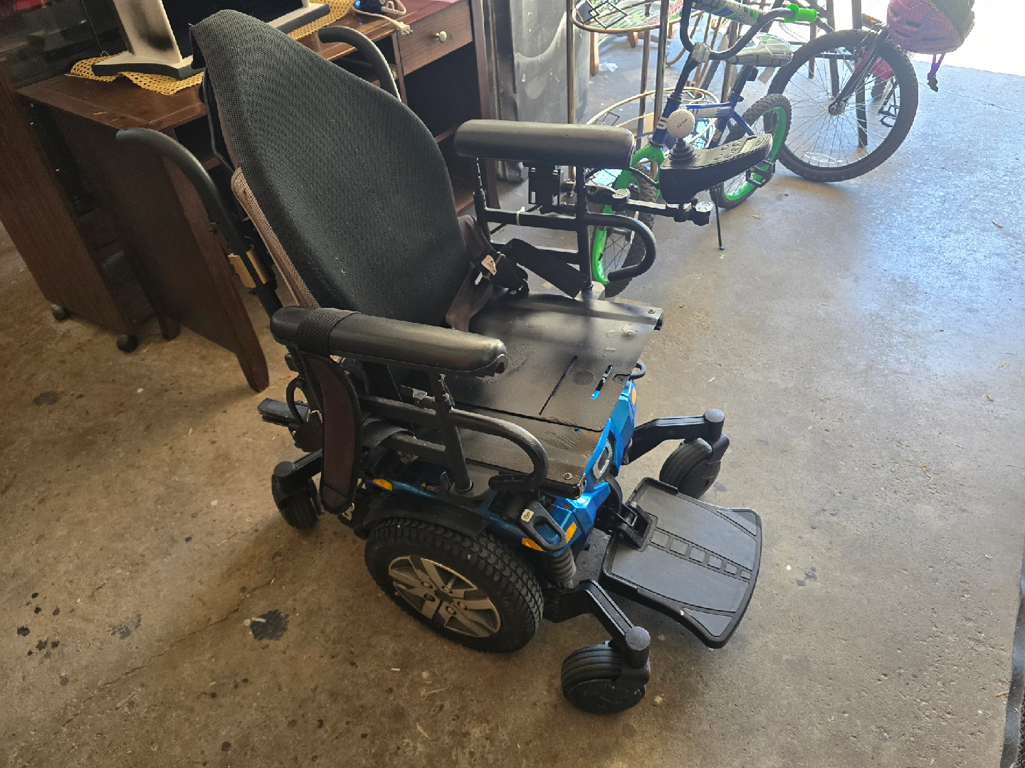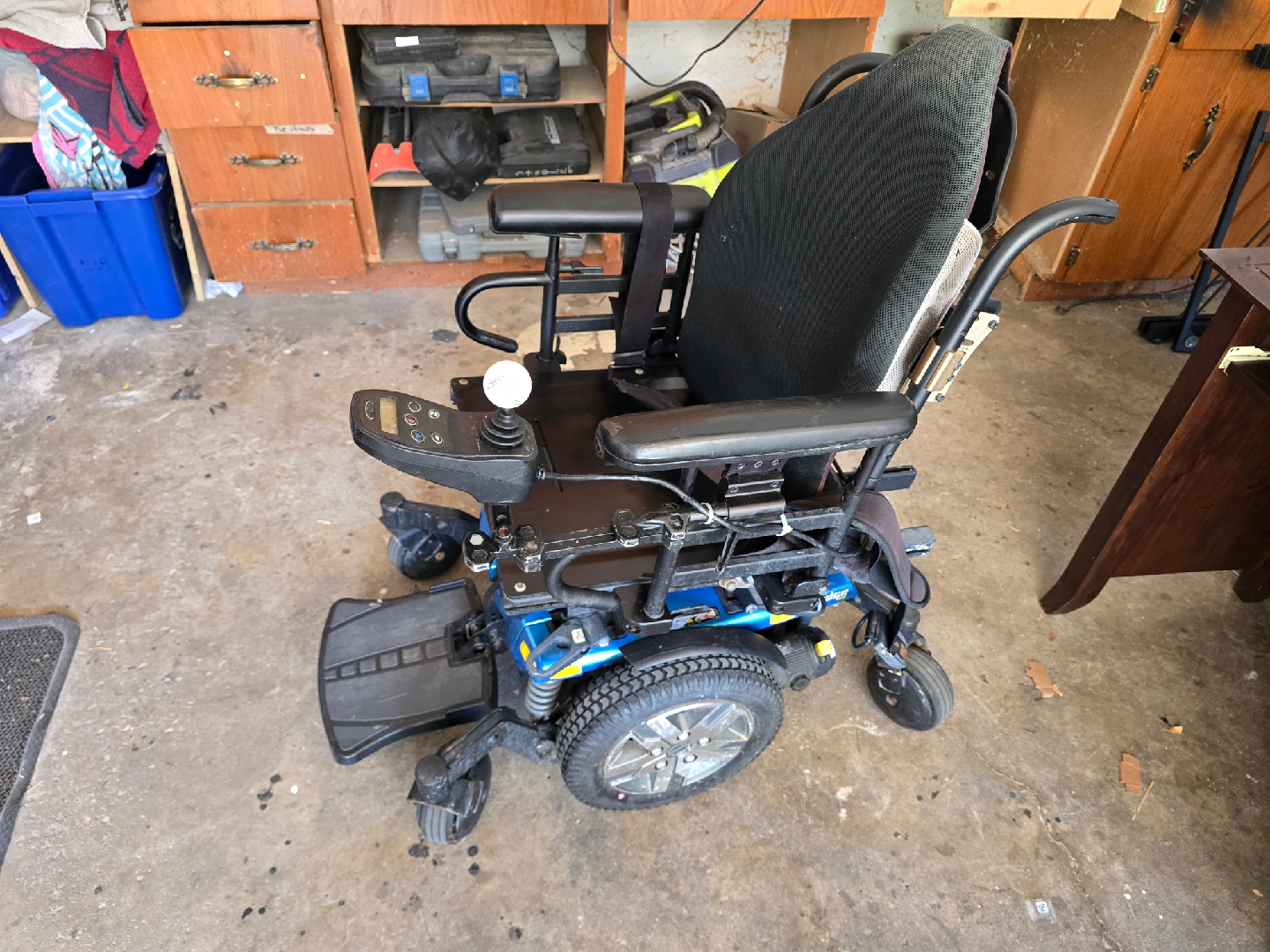 I'm selling a Quantum Power Wheelchair that's ready to roll! This robust mobility aid features a comfortable seat, responsive controls, and a sturdy frame. This unit is used but in good condition, perfect for anyone needing reliable transportation. Additional features include: * Adjustable armrests * Intuitive joystick control * Durable tires for various surfaces