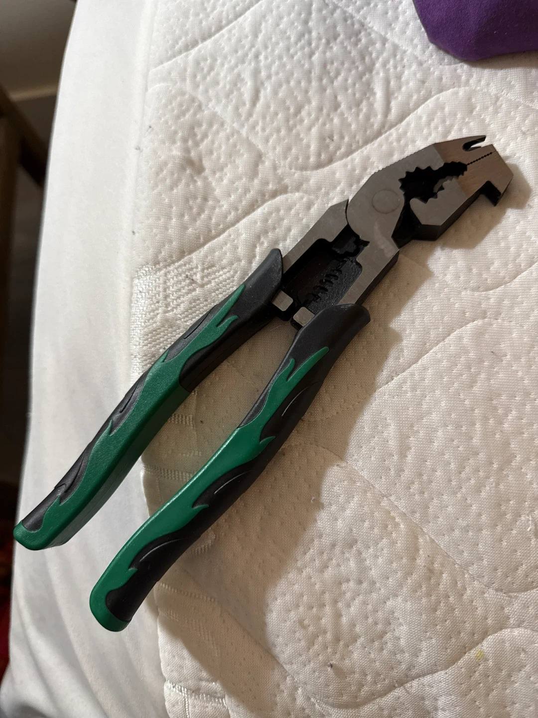 Pliers with a green and black handle, ready for your next project! These are in great shape and ready to go, almost brand new
