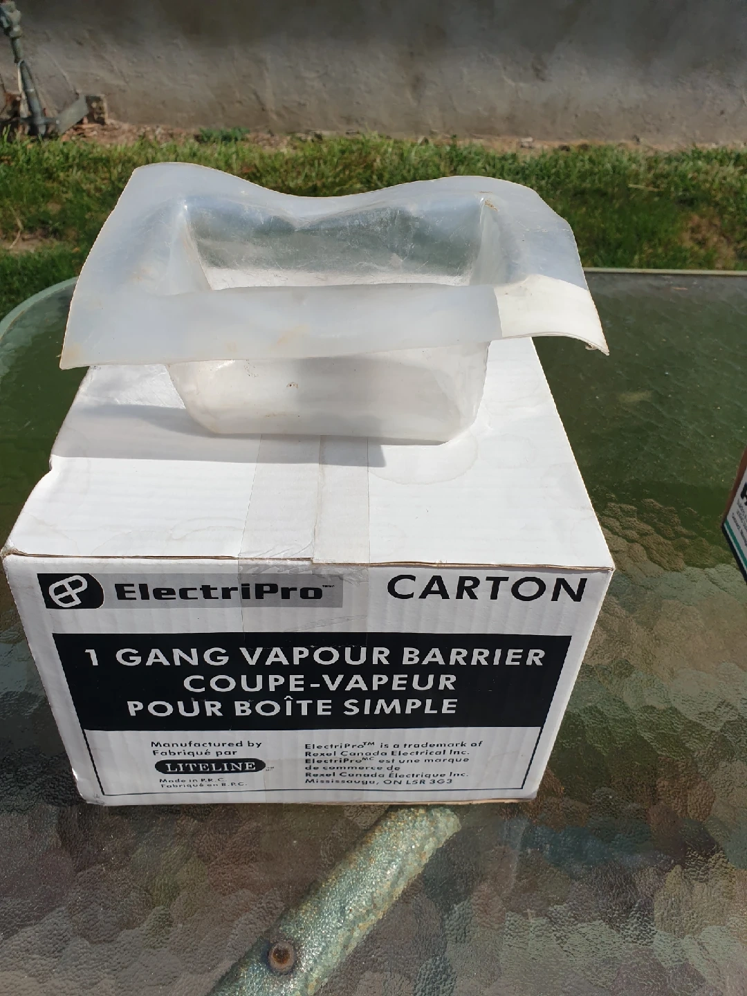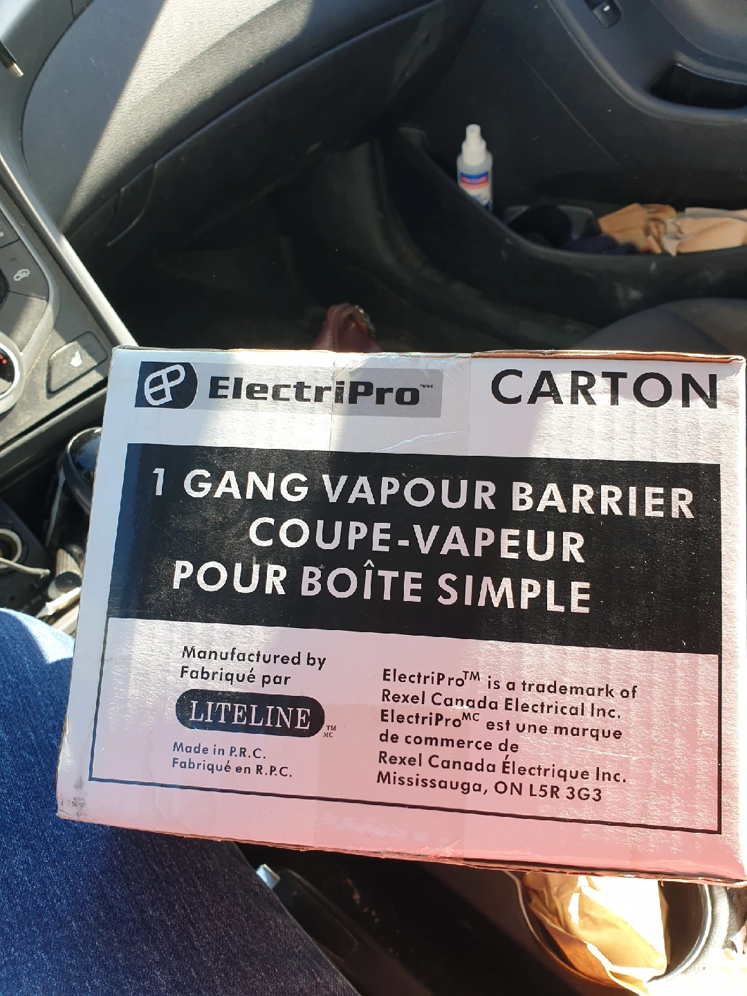 I'm offering a box of ElectriPro 1 gang vapour barriers, essential for sealing electrical boxes against moisture and air leaks. These barriers are new, ensuring optimal performance and compliance with building codes. Protect your electrical installations with these simple to install vapour barriers. They help maintain energy efficiency and prevent condensation. Don't let drafts and moisture compromise your electrical work! If the ad's up, it's up for grabs! No holds first pu.