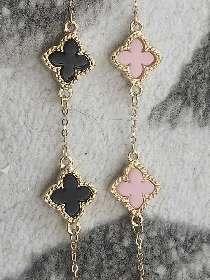 189Add a touch of elegance to your look with this stunning clover bracelet! Features 4 clover-shaped charms with a shiny gold outline and your choice of pink or black enamel centers. Perfect for both everyday wear and special occasions. β¨ Details: Condition: Brand new Colors available: Pink or Black Adjustable chain with secure lobster clasp Elegant and trendy design π Great as a gift or a stylish accessory for yourself! π΅ Price: $10 for each π Pickup: Brock Road & Pickering Parkway (Cash only, SF/PF home)