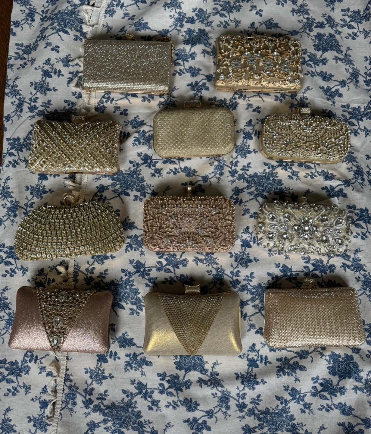 19all gorgeous beaded clutches. golden colours and special styles. Perfect for weddings or special occasions. Gold and champagne tones. pick up at @aurora / @brampton / scarborough / mississauga / markham free delivery if u order 3 clutches