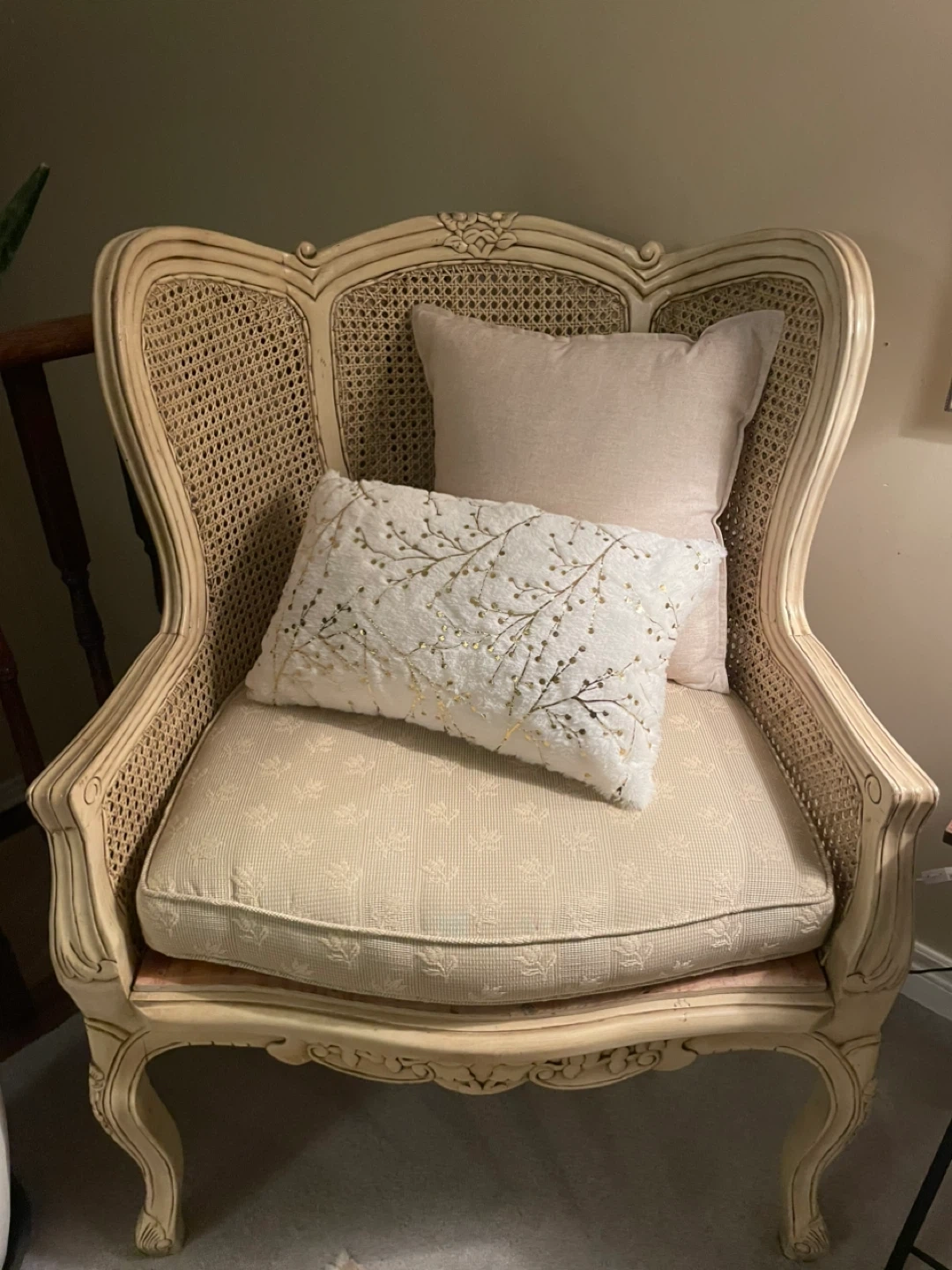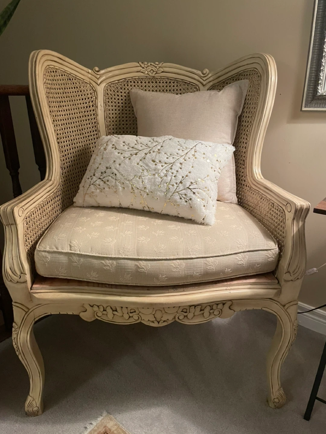 196Elegant French Provincial Accent Chair β Timeless Design This exquisite French Provincial accent chair combines refined craftsmanship with classic elegance. Featuring hand-carved wood details, a beautifully aged cream finish, and a woven cane back, this piece brings sophistication to any space. The plush, neutral upholstery complements the graceful frame, making it ideal for a bedroom, sitting area, or statement corner in your home. πͺ Details: β’ Solid wood frame with intricate carved detailing β’ Original cane back and sides in excellent condition β’ Upholstered seat cushion in soft, neutral tones perfect condition (new) β’ Beautifully aged patina that enhances its character π Dimensions: 39β W x 41β H x 24β D π° $325 OBO π Pickup up at Coxwell and Gerrard. This is a one-of-a-kind piece that elevates any interior serious inquiries only, please. If ad is up itβs available