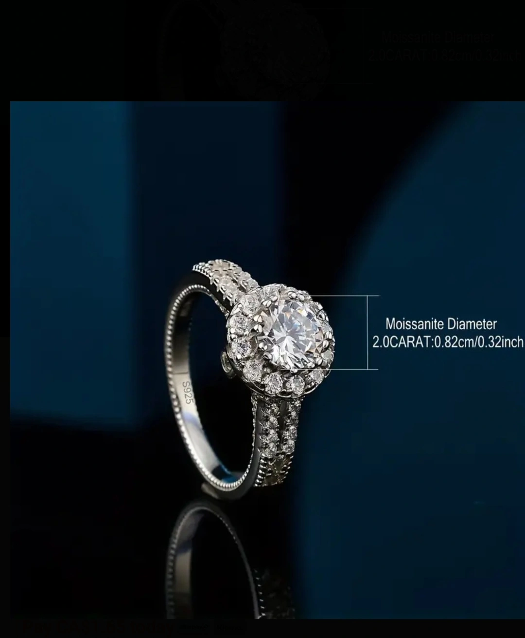 Show allElegant Halo Moissanite Ring, 2 Carat, S925 Sterling Silver