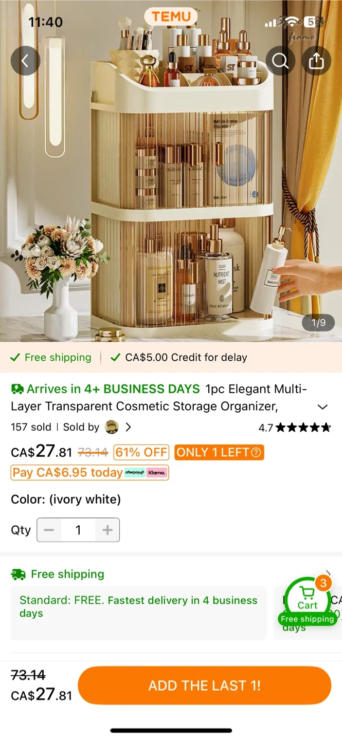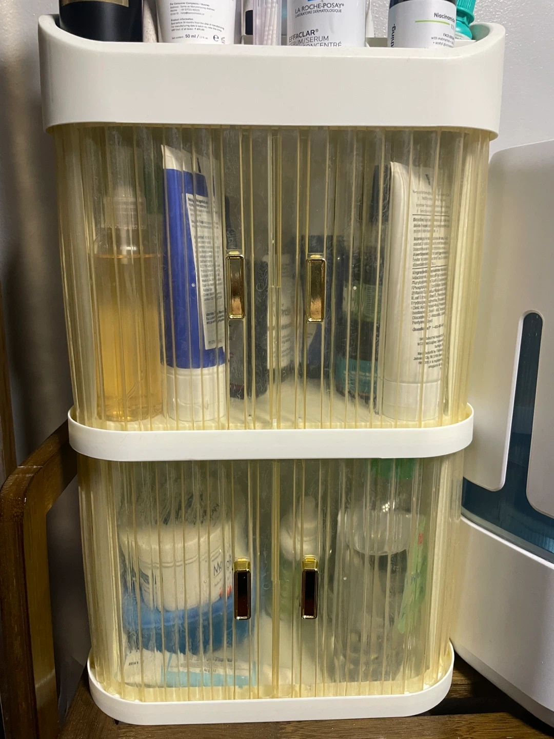 Selling an elegant multi-layer cosmetic storage organizer! It's in ivory white and perfect for keeping your beauty products tidy and accessible. This transparent organizer is a great way to display your items and keep them dust-free. Originally CA$27.81.