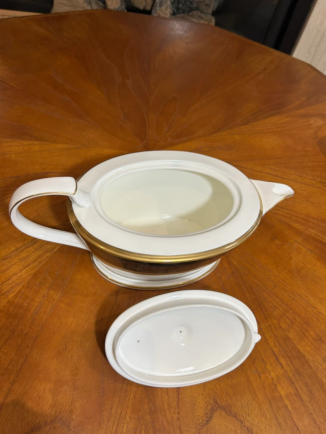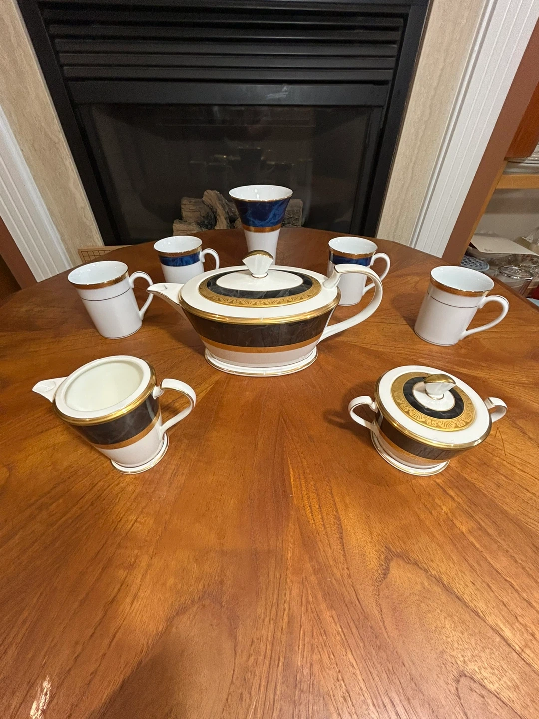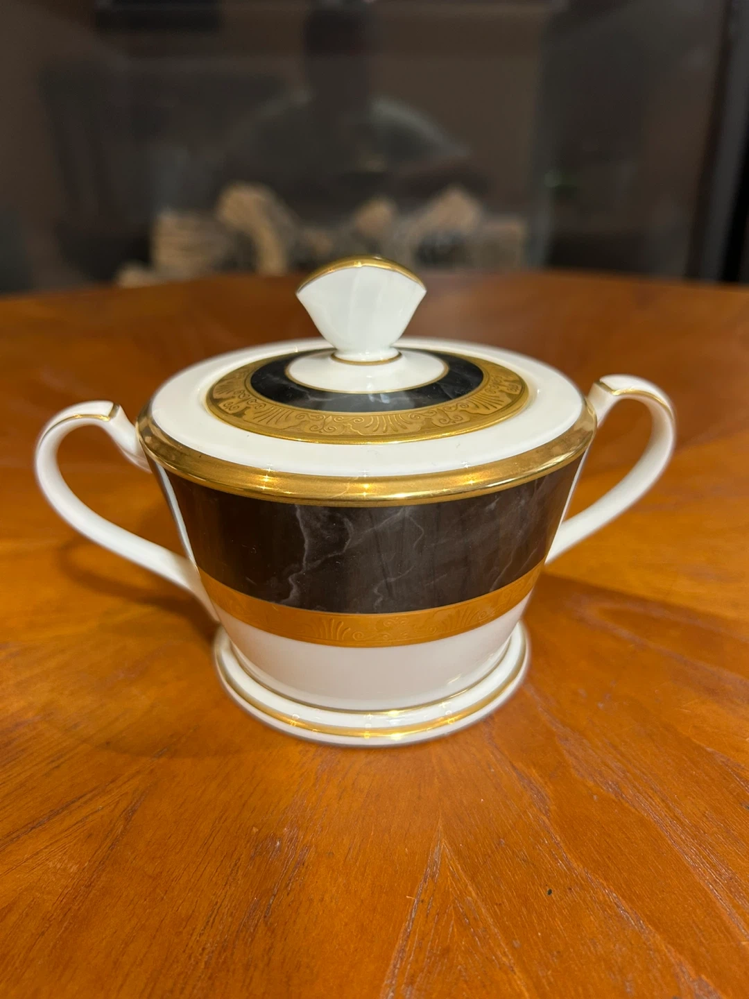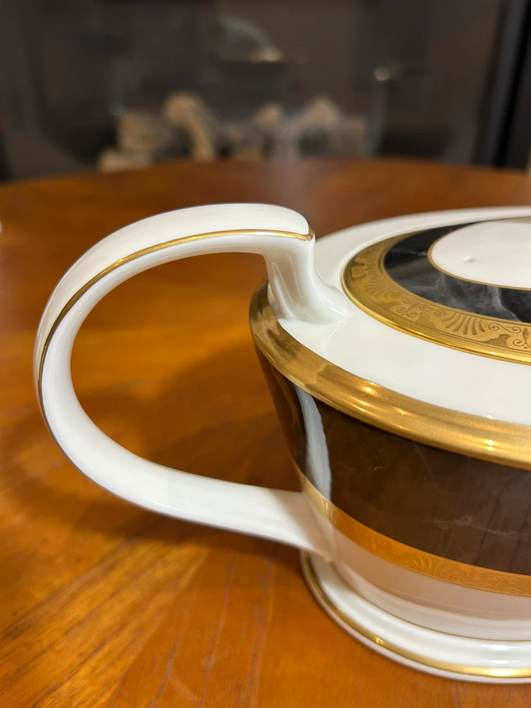 This teapot is in great condition and features a beautiful design with gold trim. It measures approximately 8 inches in diameter and 6 inches in height. Perfect for tea lovers! Noritake Opulence Art Deco Bone China Coffeepot Set from Japan 1 Teapot 1 Creamer 1 Sugar Bowl 4 Mugs 1 Vase No chips or cracks. From a non smoking and pet free home. They are pre-loved items that they maybe have signs of wear so please study all photos for more details. Condition: Overall in very nice Used vintage condition for its ages. Thank you so much!
