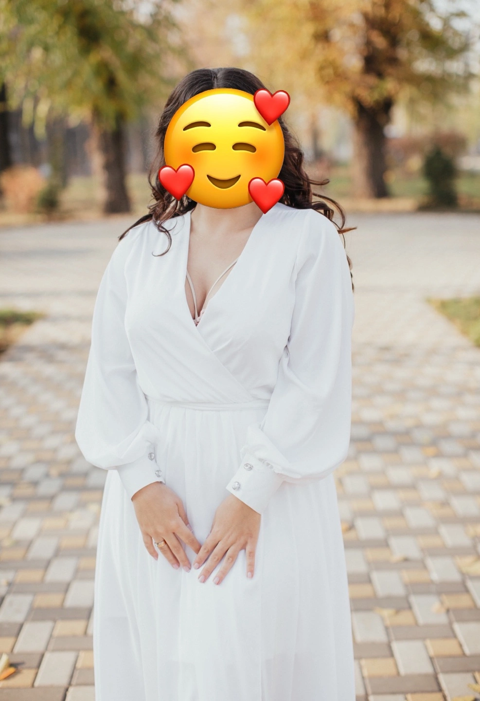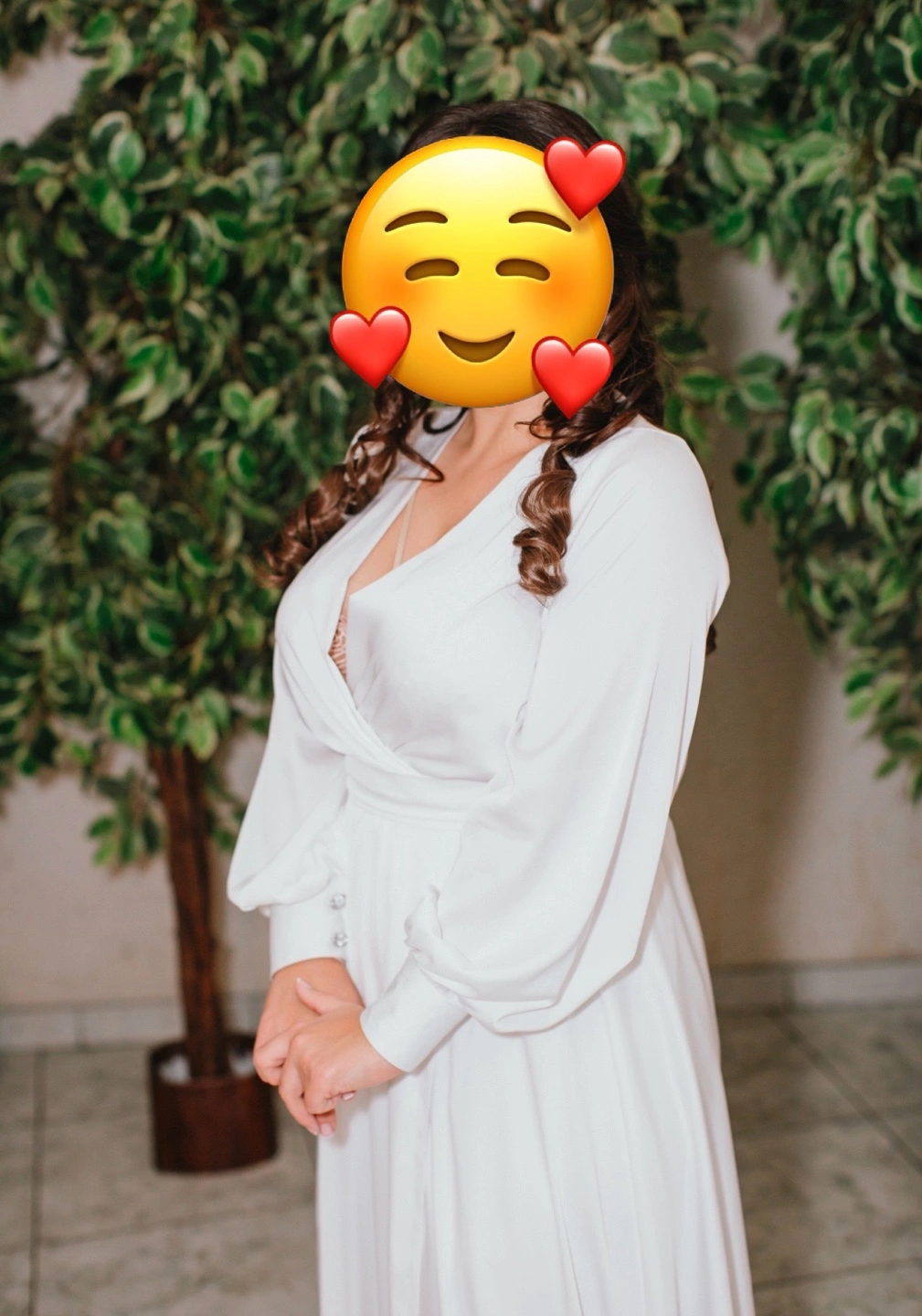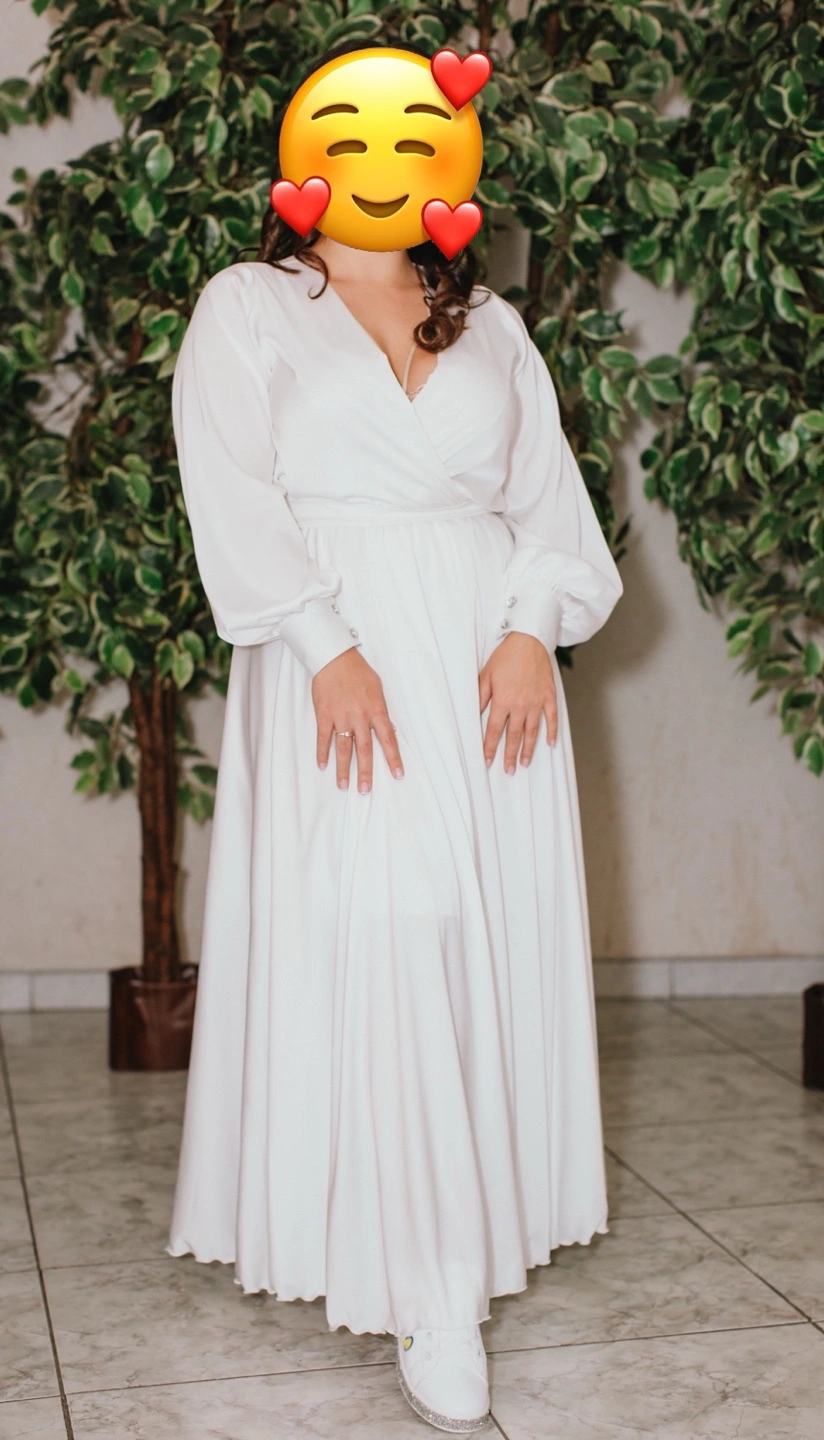 29Flowy white maxi dress. Long sleeves, V-neckline. Wrap style. Perfect for a special occasion or casual wear. Size Medium-Large. Also you can wear it if you’re pregnant. There is a petticoat under the dress