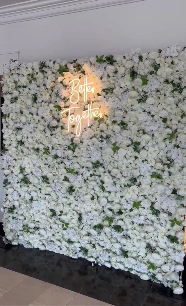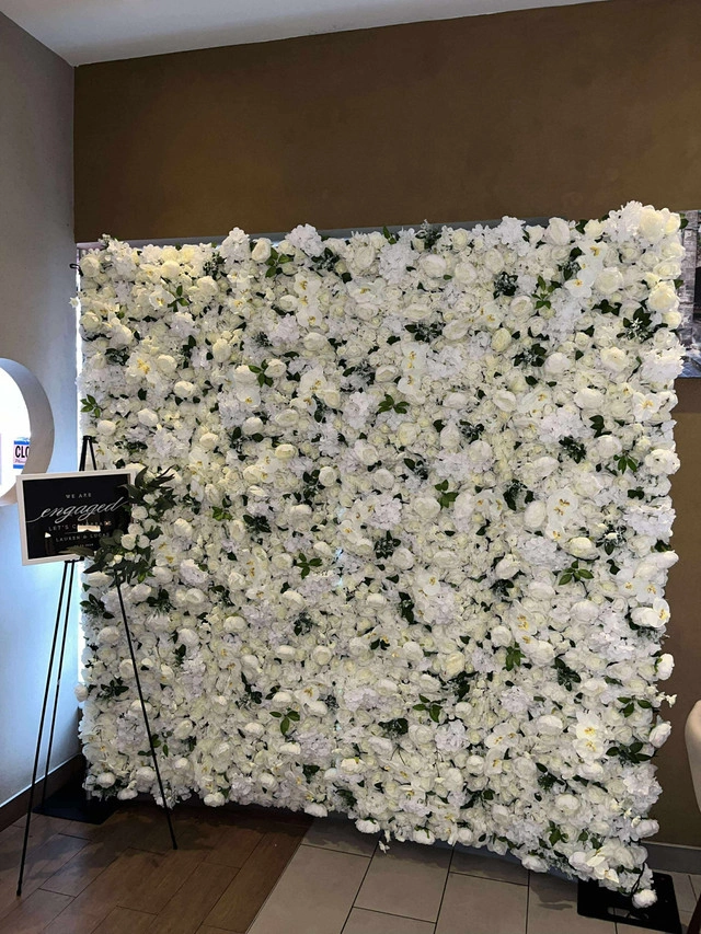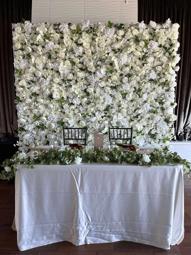 Make your event unforgettable with our luxurious all-white flower wall, featuring a lush mix of roses, hydrangeas, and delicate greenery. Perfect as a backdrop for weddings, engagements, bridal showers, baby showers, and corporate events, this timeless design adds sophistication and elegance to any venue. Our premium 8x8 flower wall is crafted with high-quality silk florals for a full, realistic look that photographs beautifully. Whether placed behind a head table, at the entrance, or as a photo booth backdrop, it creates a stunning focal point that guests will love. Ideal for: Weddings | Engagements | Showers | Birthdays | Corporate Events ✨ Dimensions: 8 ft x 8 ft