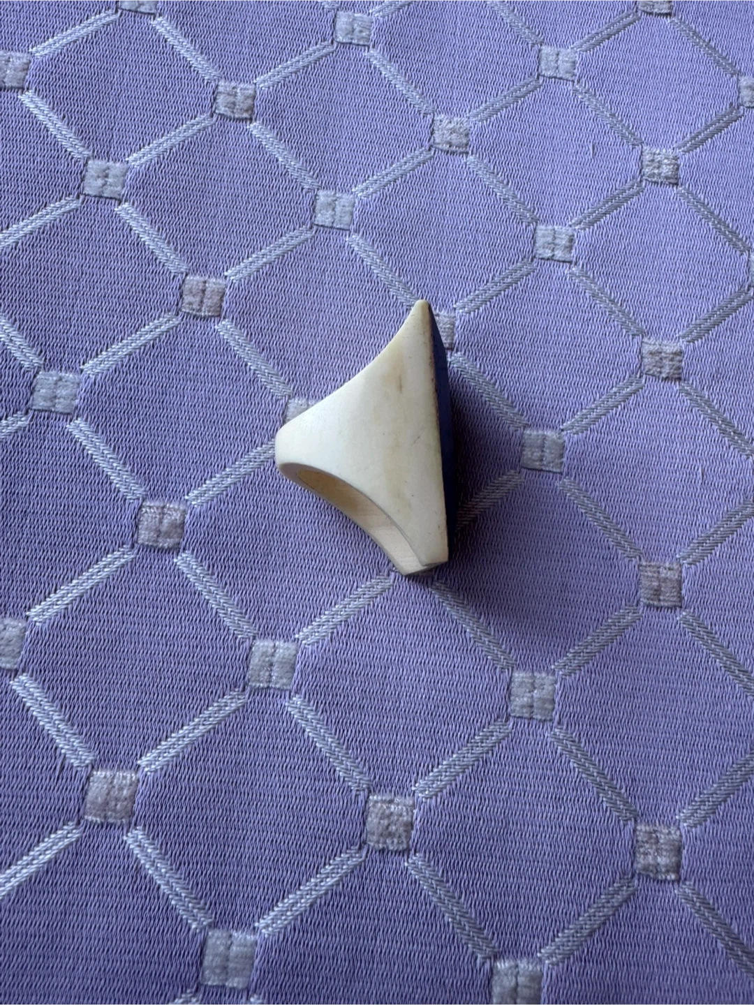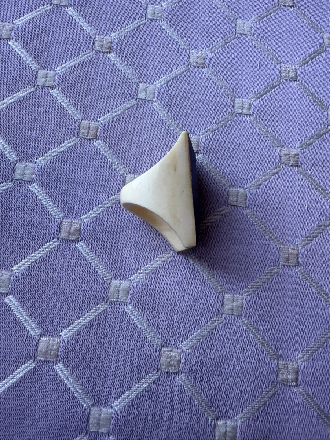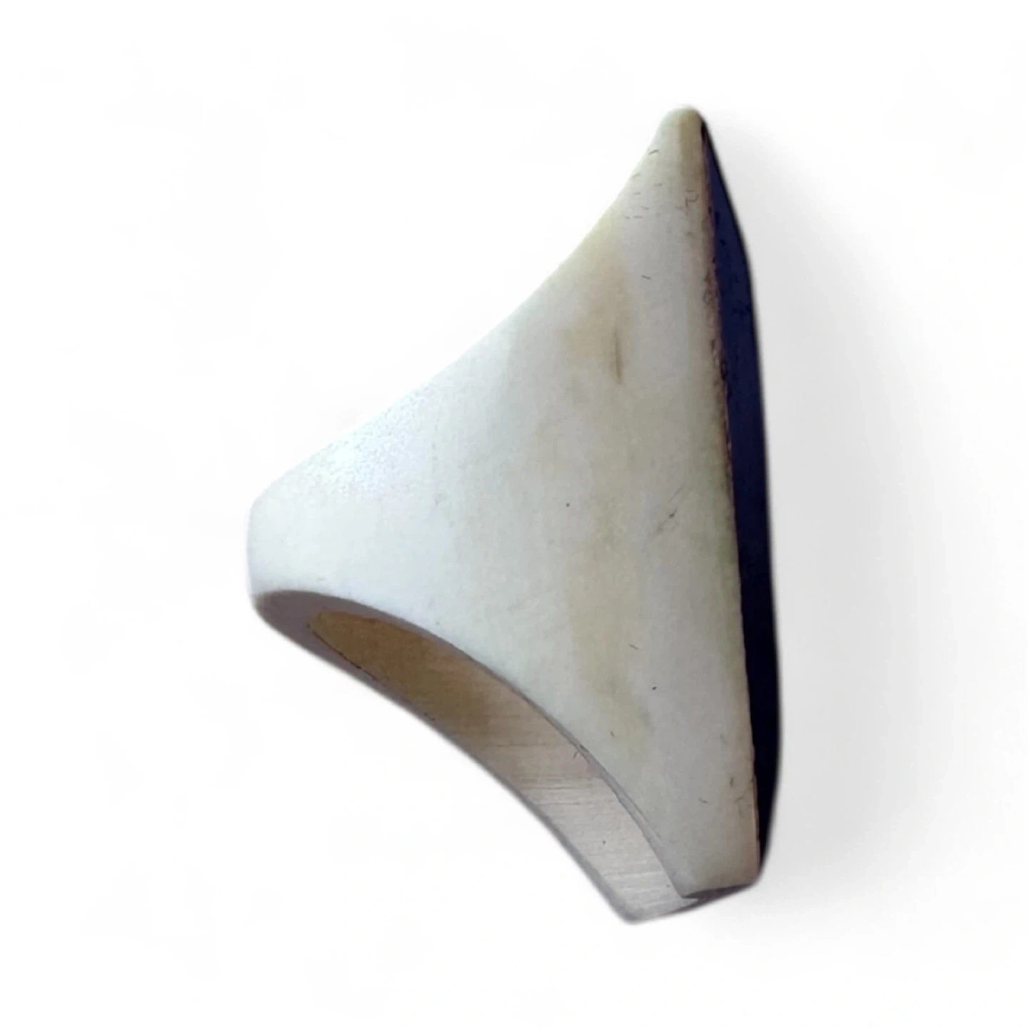 15Unique vintage ring with a black stone and cream-coloured band. It's in good condition and would make a great addition to any jewelry collection