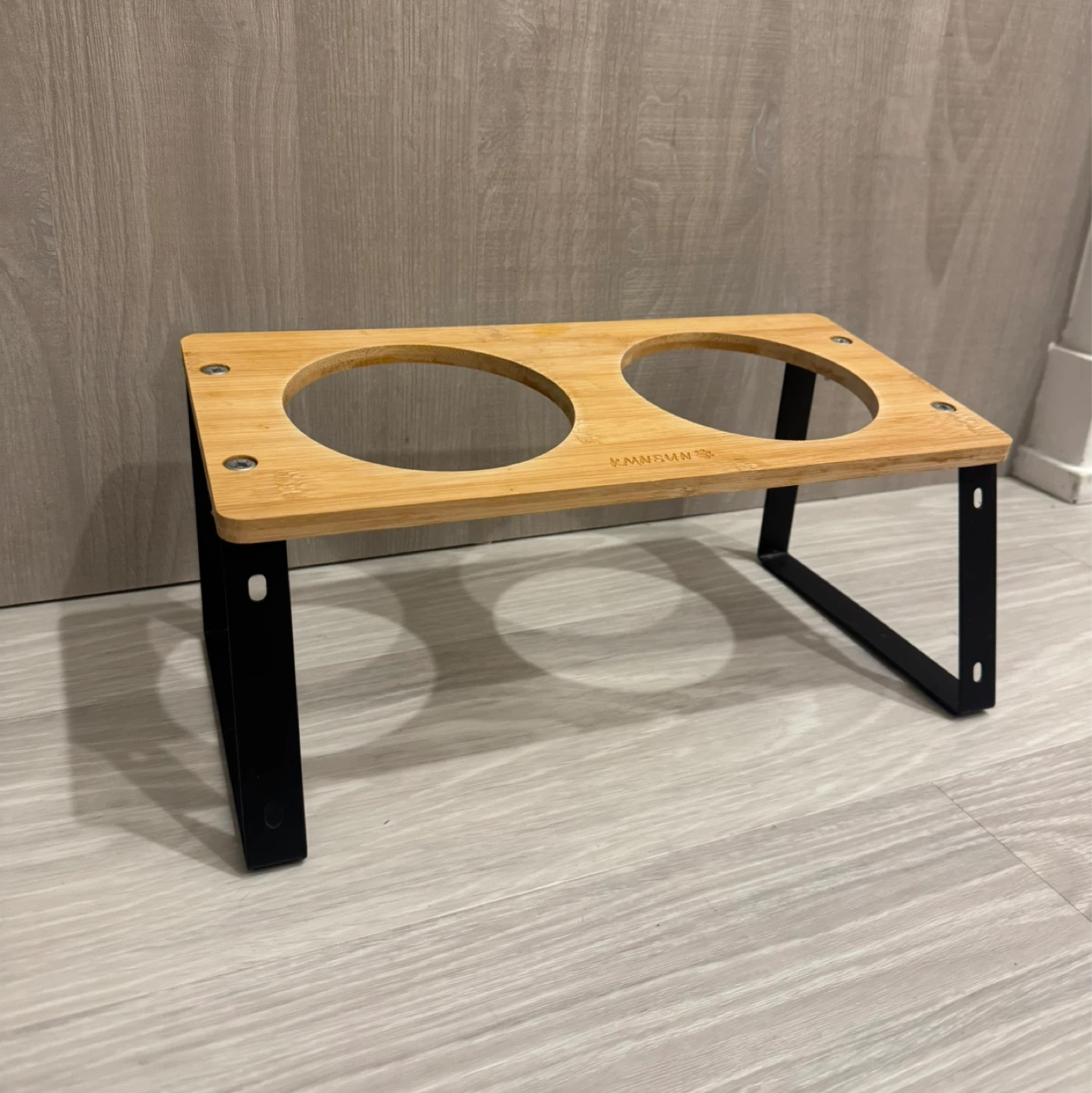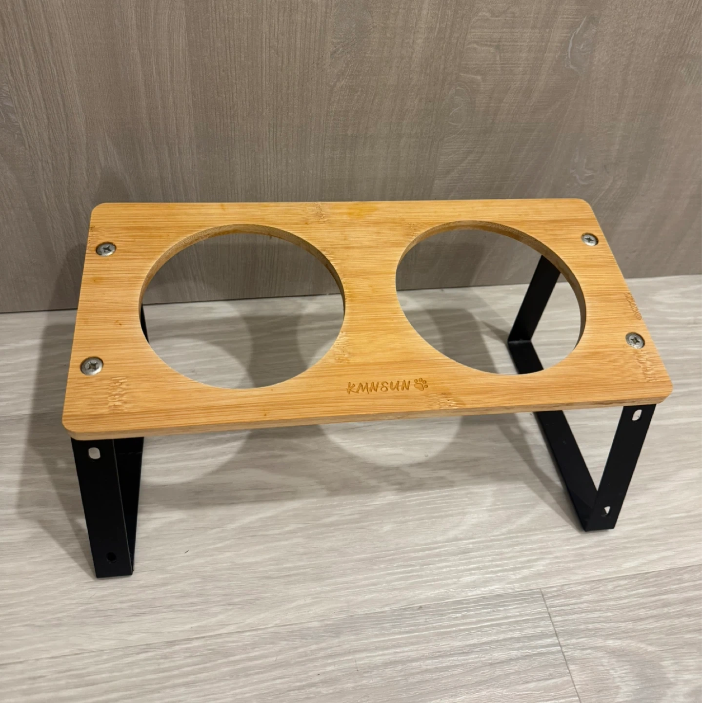 329This KMSUN elevated double pet feeder is perfect for cats and small dogs! It's made of bamboo and has a sturdy metal frame.