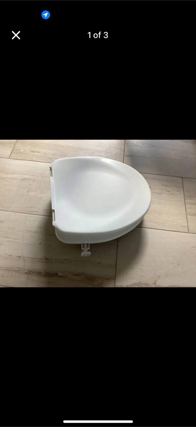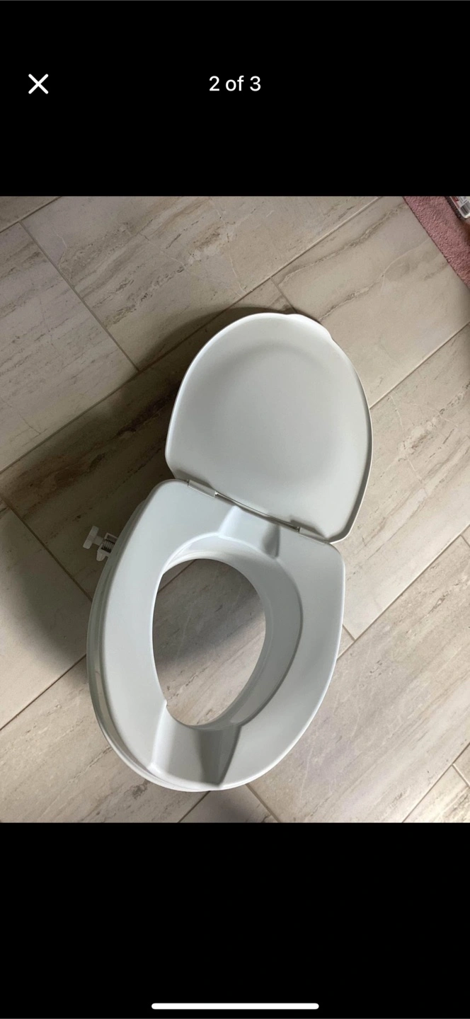 Elevated toilet seat, raises toilet height. Plastic construction. White colour. Good for those with mobility issues….or recovering from abdominal surgery. Pickup Garth street & Twenty road