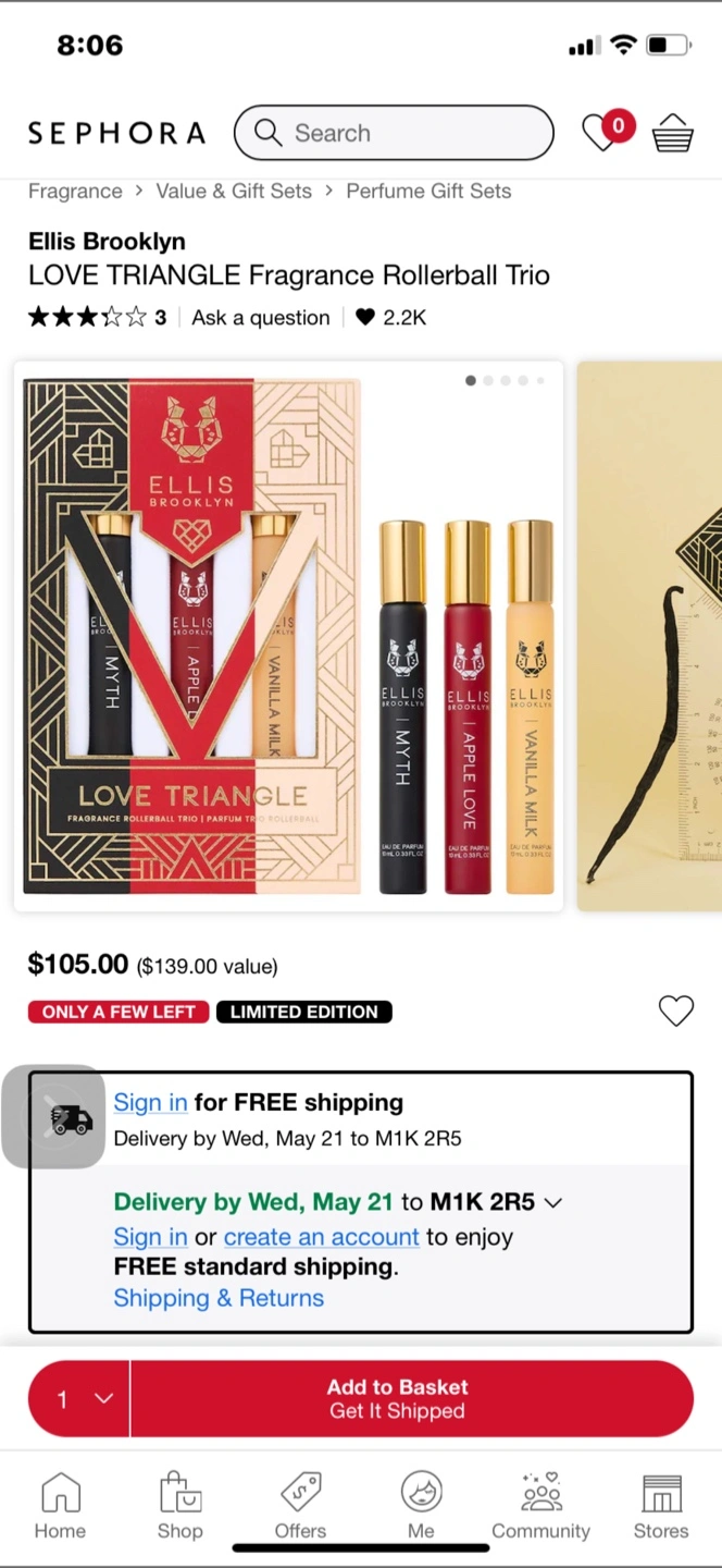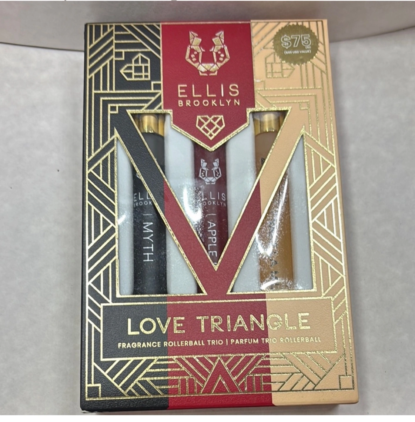 Limited edition fragrance rollerball set. Includes three scents: Myth, Apple, and Vanilla Milk. New, in box. Great gift!