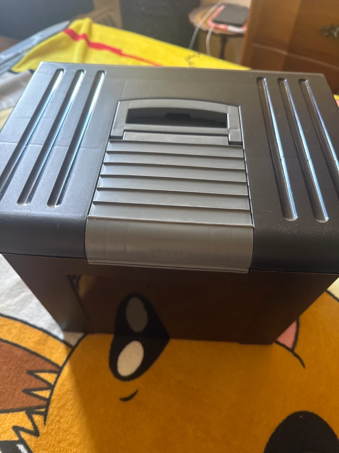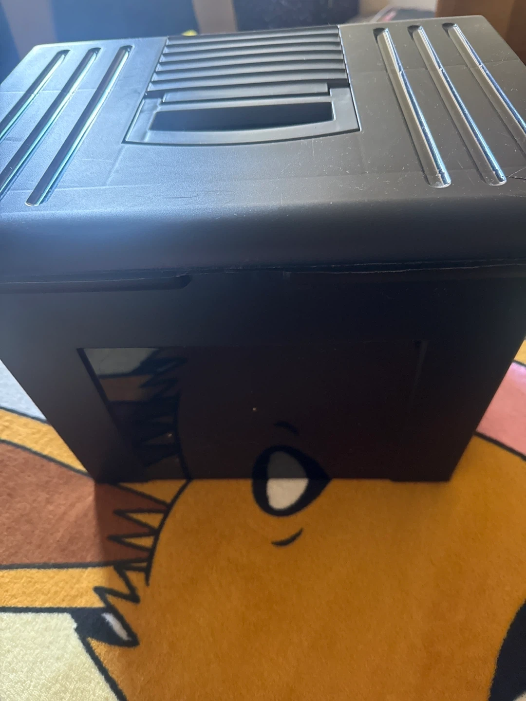 41Selling a portable file tote by ELON in black. It's great for organizing your files and keeping them easily accessible. Perfect for home or office use! Slight crack top left side but still fully functional.