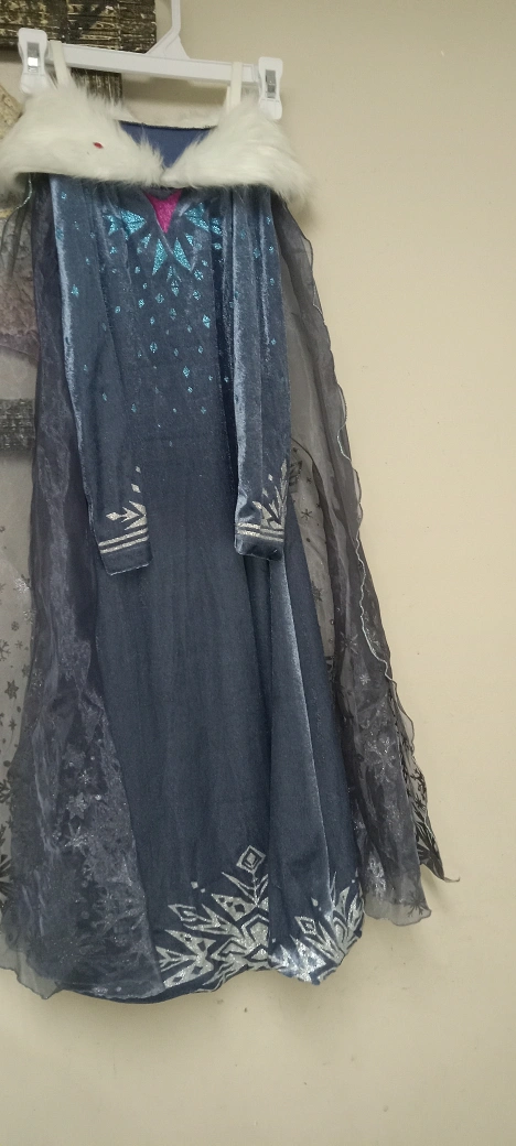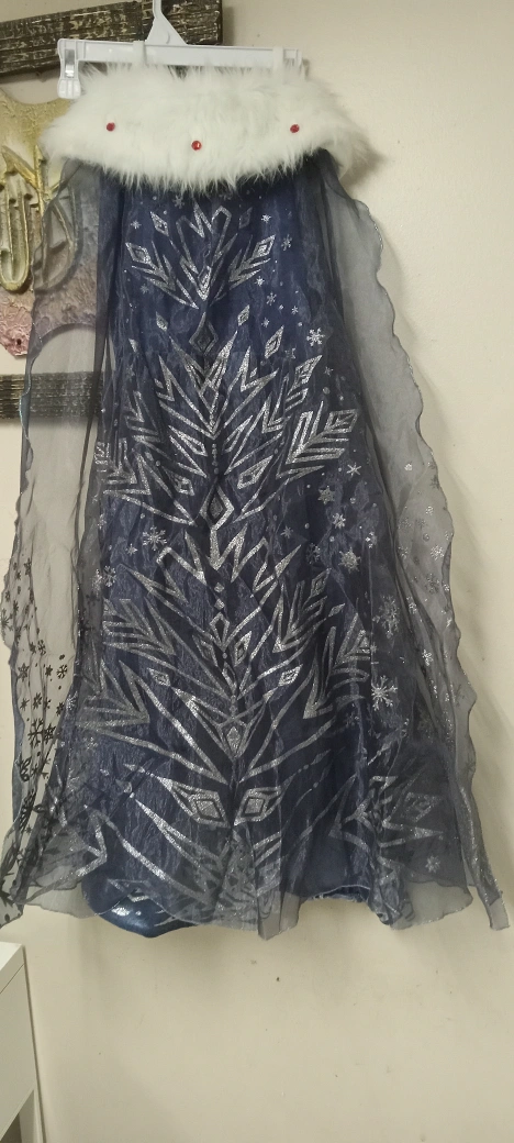 Selling a beautiful Elsa costume dress, perfect for any 'Frozen' fan! The dress is a lovely blue colour with silver snowflake detailing. It also features a sheer cape and a furry white collar. Your little one will love dressing up as their favourite ice queen costume is excellent condition worn just 1 time if interested plz msg me thankyou an advance