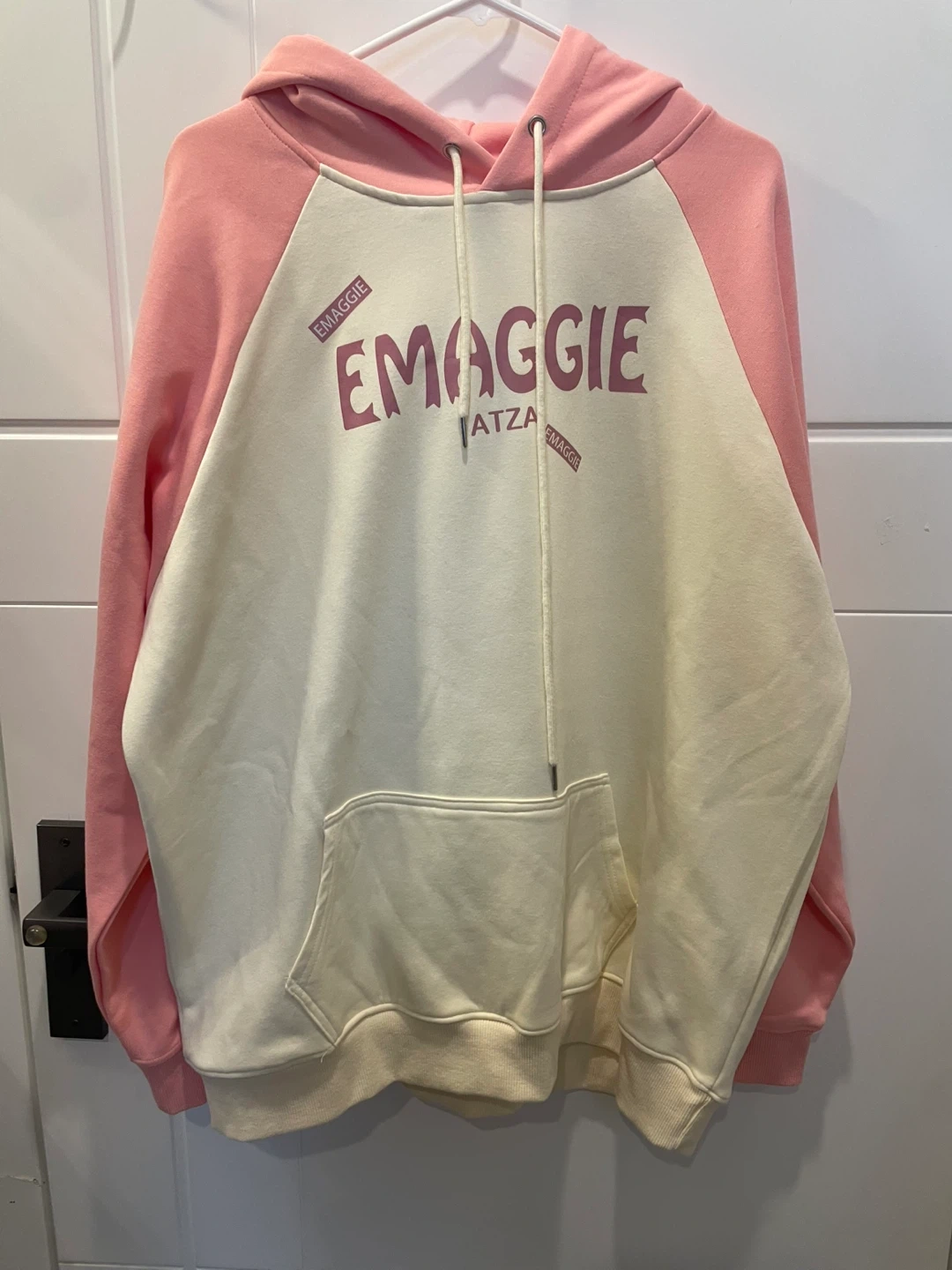 Buy & SellEmaggie Pink & Cream HoodieEmaggie Pink & Cream Hoodie$10Selling a cute Emaggie hoodie in pink and cream colours! It's in great condition and super comfy for lounging around or running errandsConditionLike newSizeLargeBrandEmaggieWHERE TO MEETCheck LocationView MapSELLERverifiedAliKillarney711 review0 chats·0 favorites·1 views