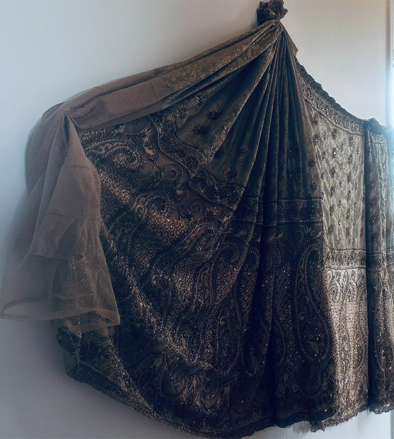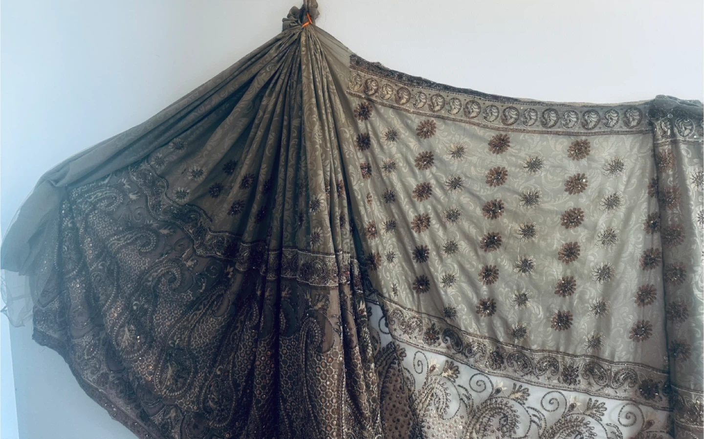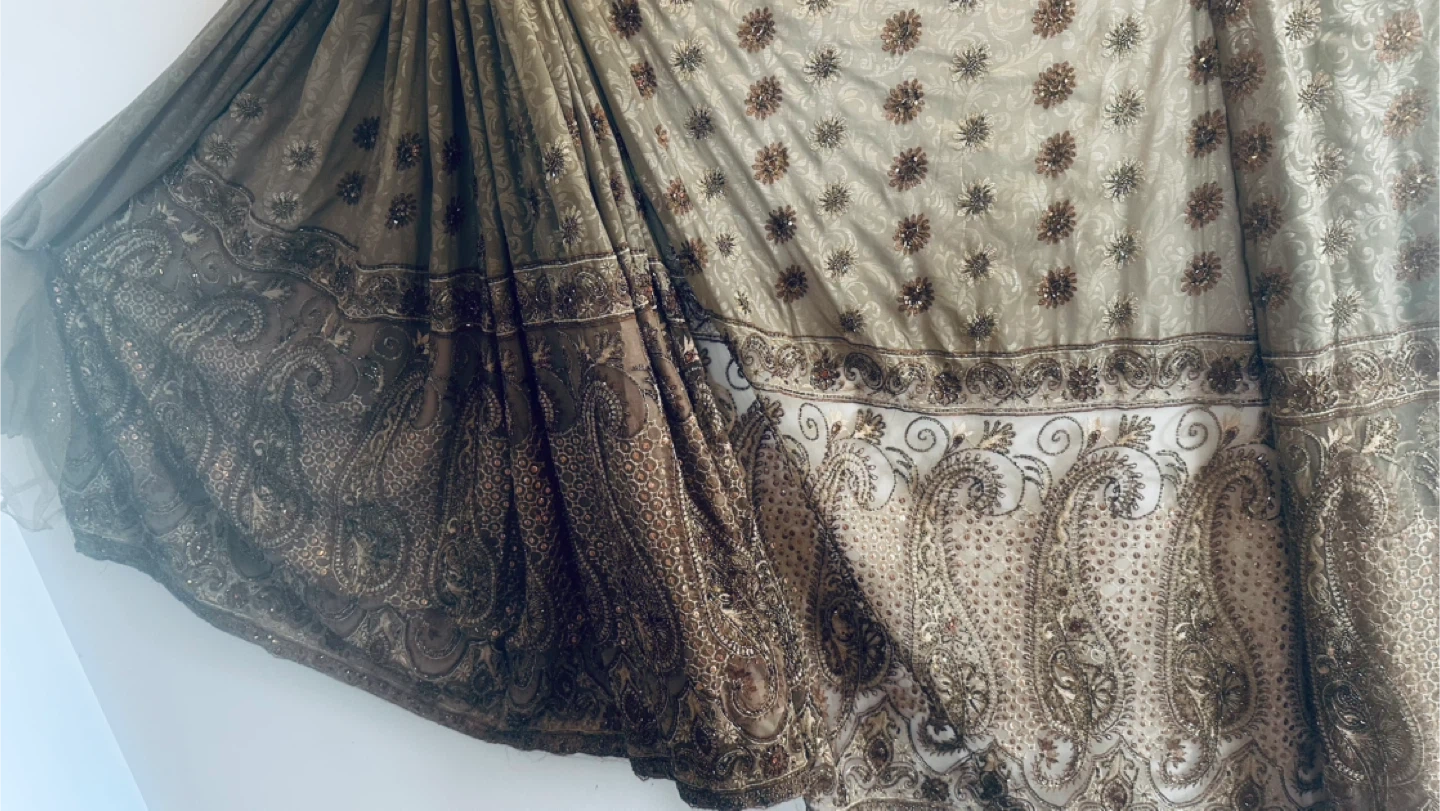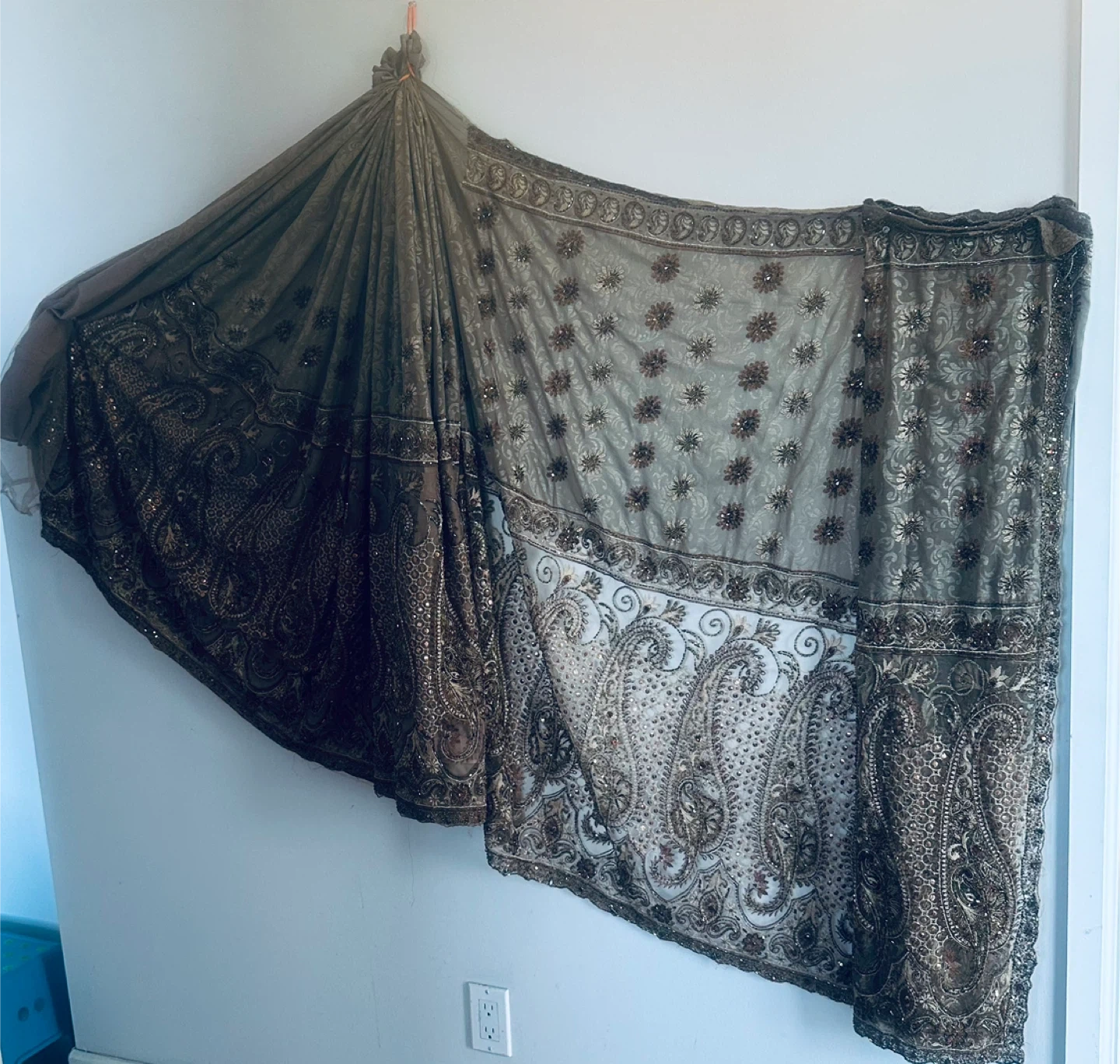 Beautifully embroidered sari with intricate detailing and a unique design. Perfect for special occasions or adding a touch of elegance to your wardrobe beads work & dabka work one time wear