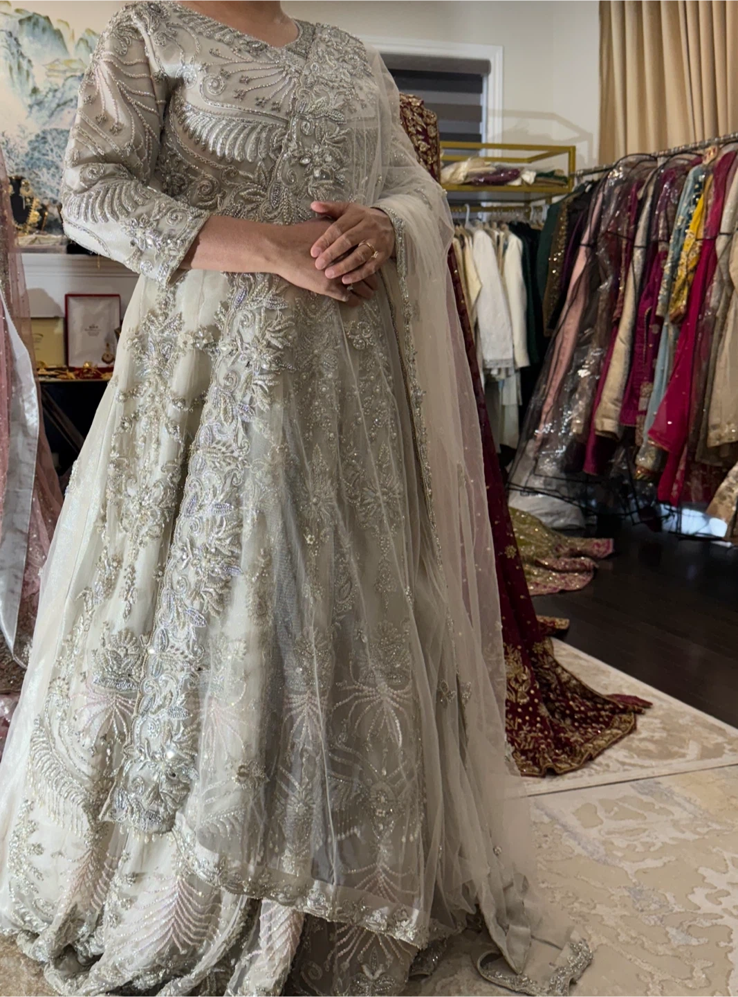 Beautiful formal dress with intricate embroidery! It's a stunning piece that would be perfect for a special occasion. The dress features delicate detailing and a flowing silhouette. It's in great condition and ready for a new home