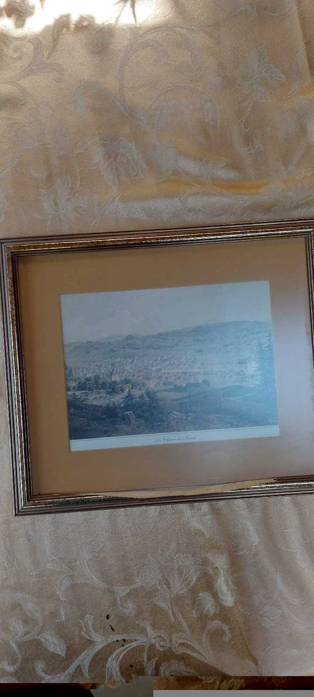 "This Little Pony" "The Three Bears" 11 X 18.5 picture of a lady in black and white 11 X 13 picture of La Chaux-de -Fonds (frame needs repair)