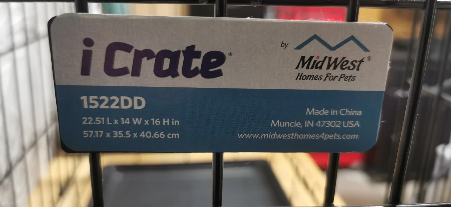 This black wire dog crate by MidWest Homes For Pets is model 1522DD. It measures 22.51" L x 14" W x 16" H. Includes a removable black pan for easy cleaning. Two doors for easy access!