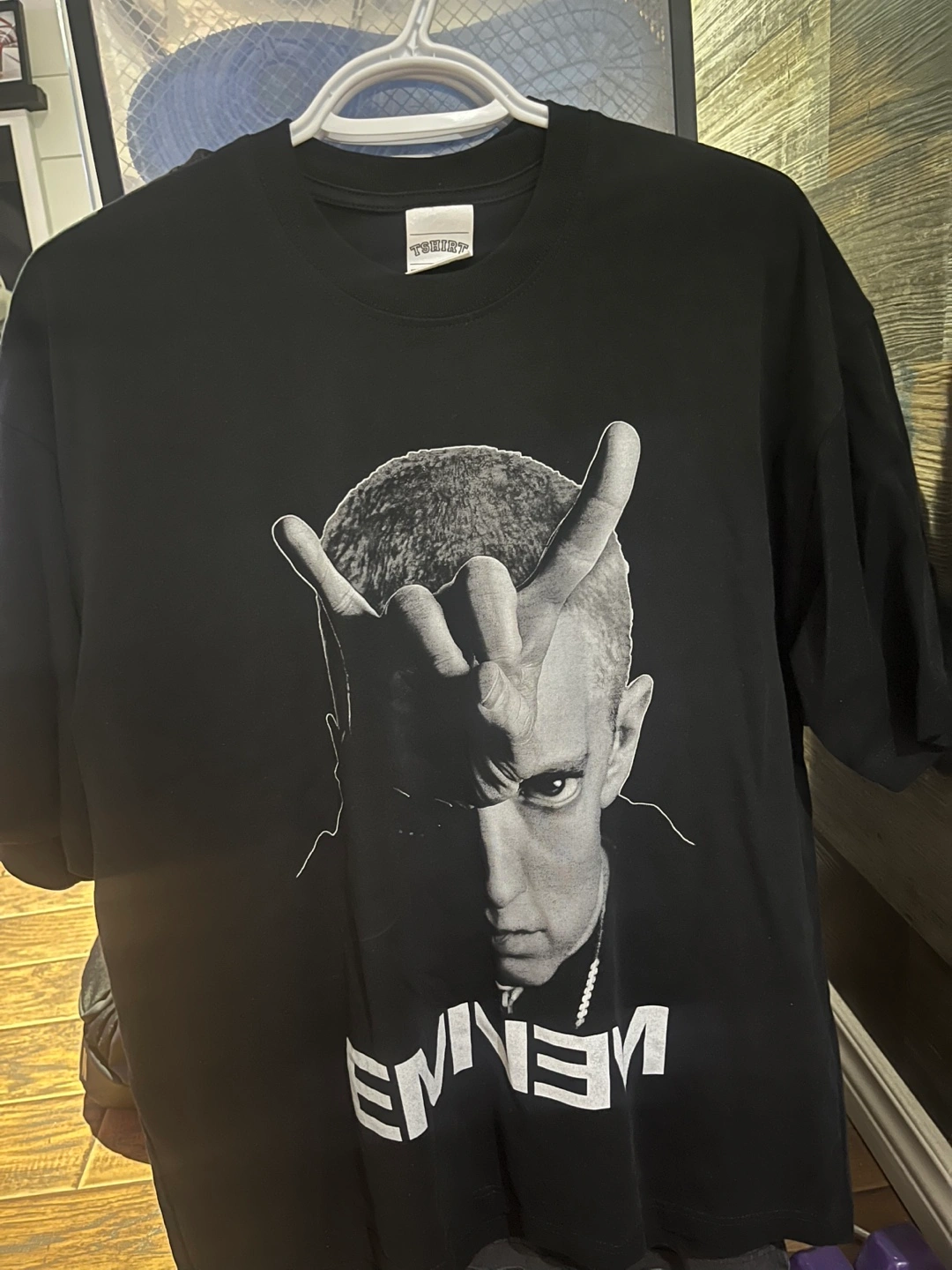 Selling a black t-shirt with an Eminem graphic on the front. It's in great shape and ready for a new home! XL