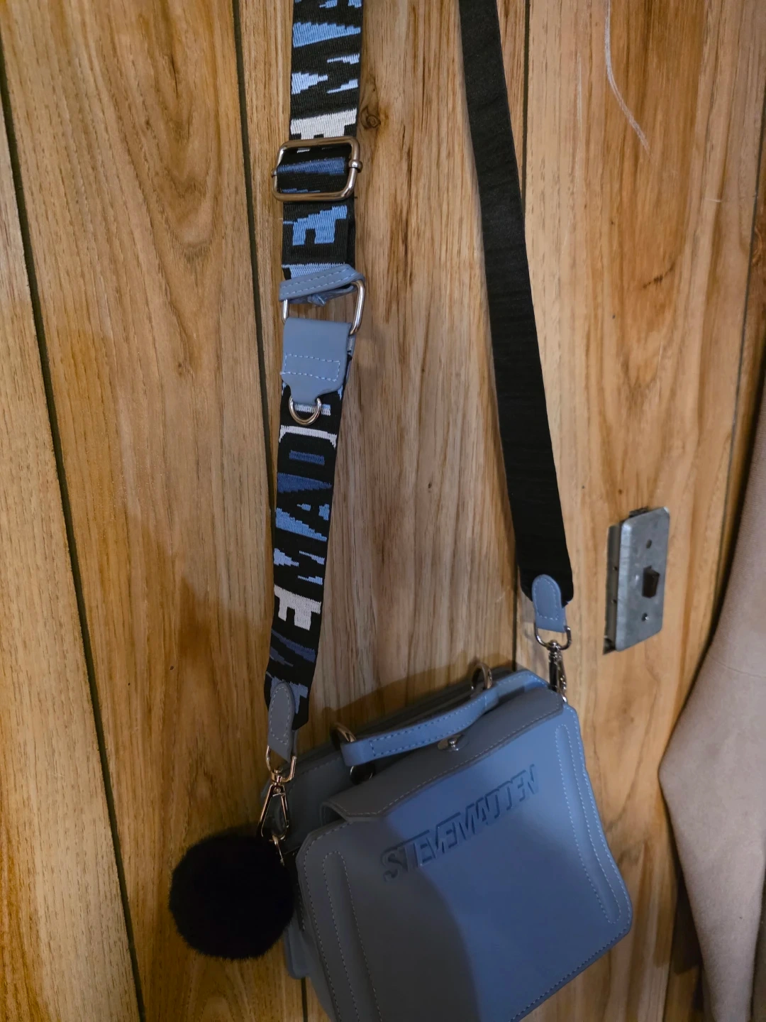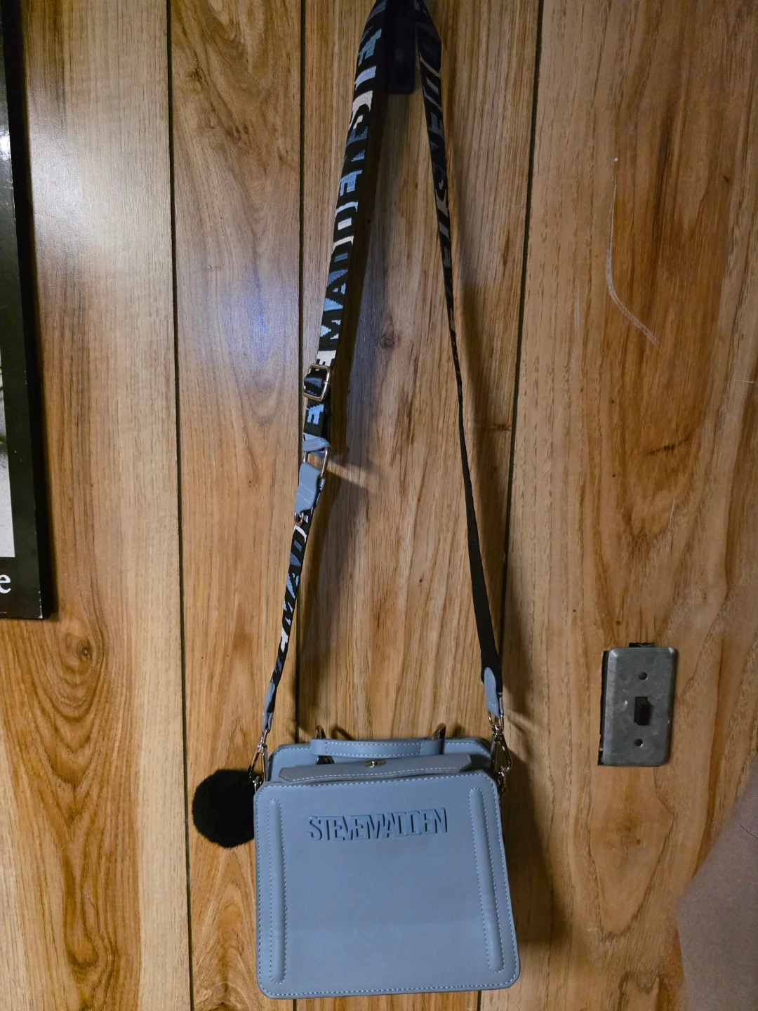 Selling a cute Steve Madden crossbody bag in a lovely blue colour! It's in great condition and has a stylish strap with the brand name on it. Perfect for carrying your essentials!
