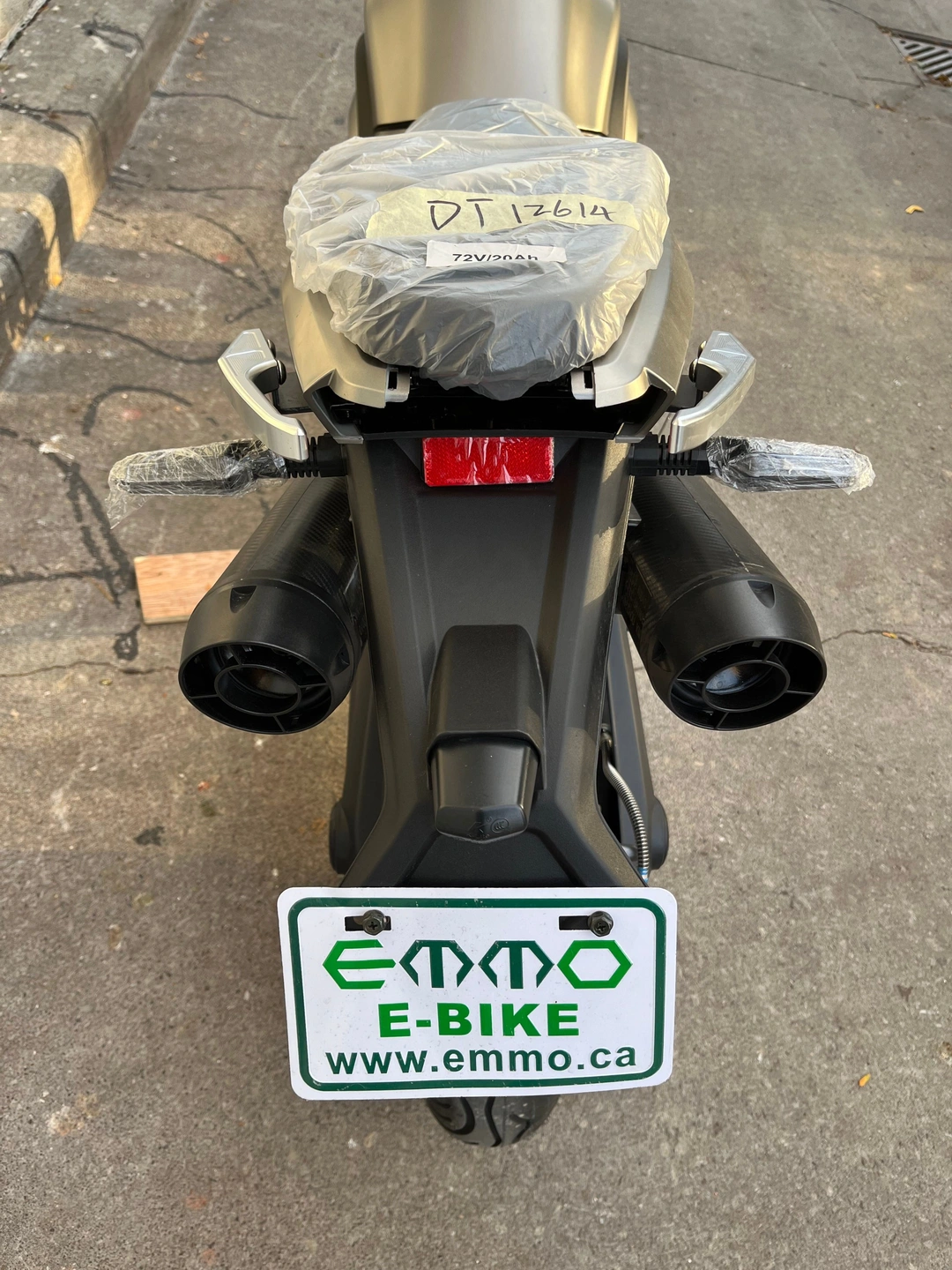 5Condition: near-perfect showroom demo, sat ~1 month. Same warranty as new. Fully tuned and ready to ride. Comes with battery and charger! Only ONE unit LEFT! — first come, first serve. High torque motor, reaches a top speed of 60 - 70 km/h. Can be modded up to 130km/h! Excellent climbing and handling capabilities! Range options and Pricing: 72V20Ah Lead-Acid: $3450 OTD 40-50 km range. 72V32Ah Lead-Acid: $3650 OTD 55-60 km range. 72V30Ah Lithium Ion: $4800 OTD 65-70 km range. 72V60Ah Lithium Ion: $6800 OTD 115-125 km range. (OTD include PDI/assembly.) If you'd like to try her out first, no problem! Test ride today at our downtown showroom, at 438 Spadina Ave. Of course, don't be afraid if you'd like to talk about the price. Surely we can work something out! Text “DX Demo” to (877) 849-5788 or call 416-792-3227 or come to our location directly. Financing available OAC.