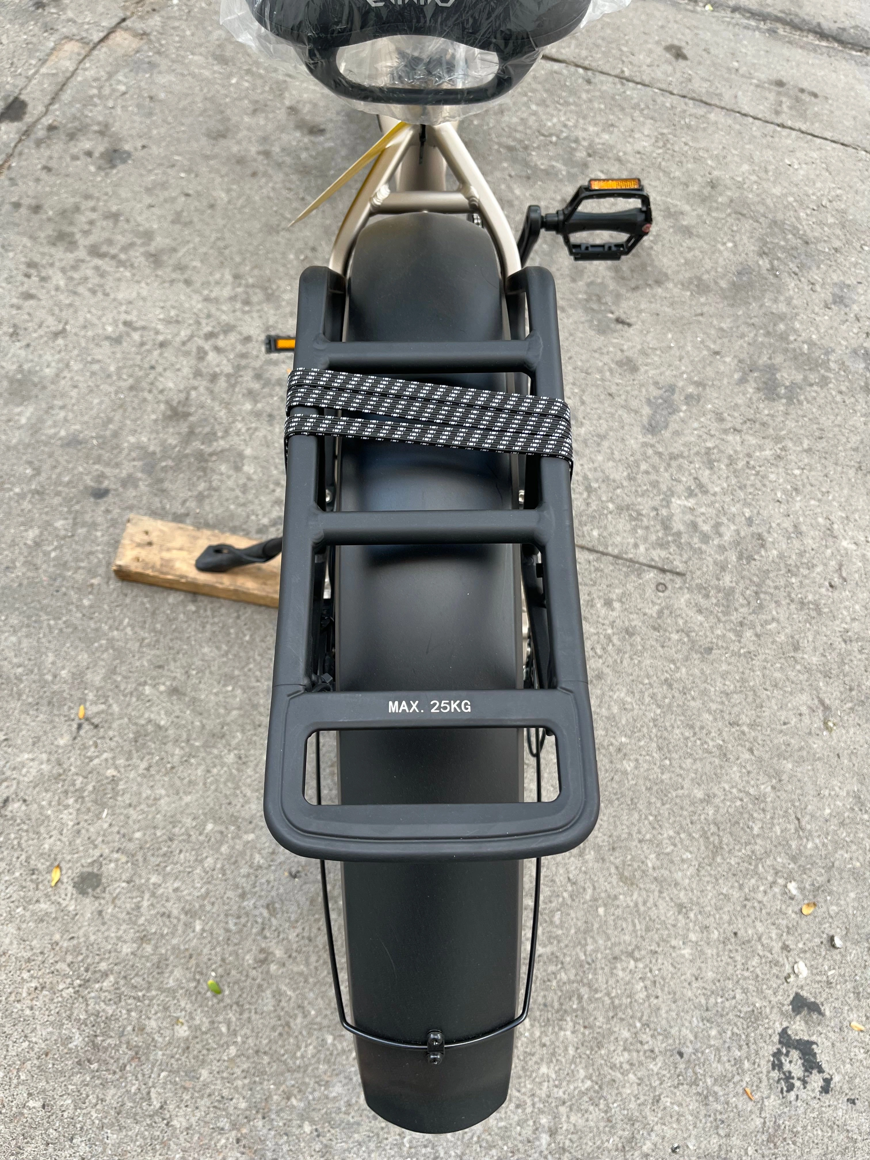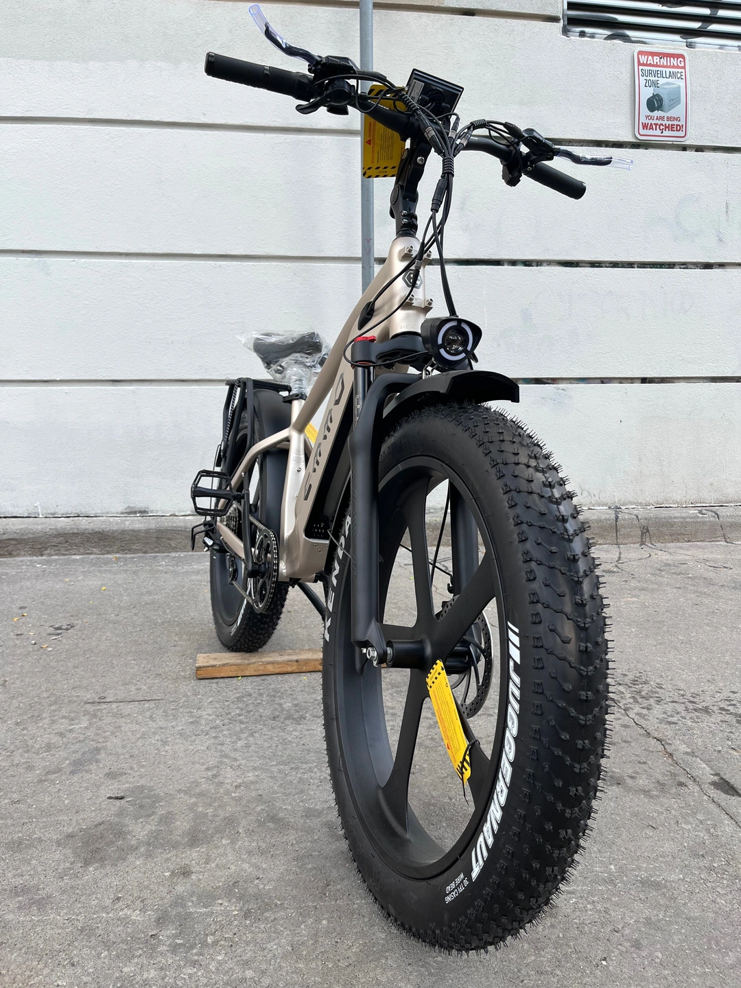 5A bike built for the city. Travel effortlessly with this electric powered bicycle! NO license needed. Condition: near-perfect showroom demo, sat ~1 month. Same warranty as new. Fully tuned and ready to ride. Comes with removeable battery and charger! Colour: BEIGE Only ONE unit LEFT! — first come, first serve. Electric bicycle. Has throttle and pedal assist capability. With a full charge, she can ideally go a MAX speed of 32km km/hr. Charges fully in 5-8 hours. Comes with a phone app for additional functionality. All terrain 26 X 4.0 FAT tires, perfect for heavy loads. Range options and Pricing: 48V15.6Ah Lithium Ion: $3200.00 OTD 40 - 95 km 48V20Ah Lithium Ion: $3500.00 OTD 55 - 125 km (OTD include PDI/assembly and 13% HST.) If you'd like to try her out first, no problem! Test ride today at our downtown showroom, at 438 Spadina Ave. Of course, don't be afraid if you'd like to talk about the price. Surely we can work something out! Text “IKONG Demo” to (877) 849-5788 or call 416-792-3227 or come to our location directly. Financing available OAC.