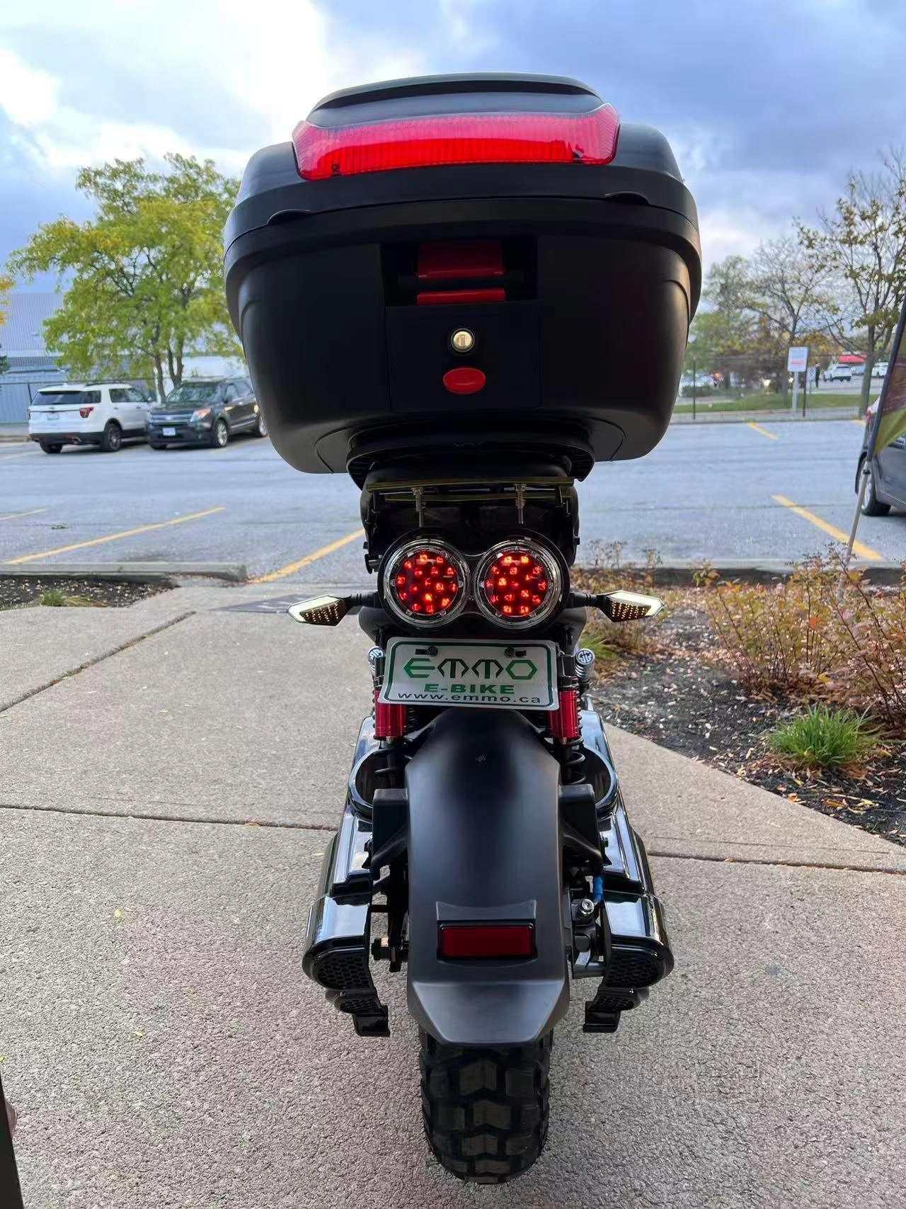 The EMMO Monster 72V Red delivers comfort, power, and storage in one bold, street-legal e-bike. With its QS Super-Torque motor, long-range battery options, and heavy-duty hydraulic brakes, it’s built for everyday riders who want both strength and style. Limited stock – first come, first served! Highlights: Performance: Brushless QS Super Torque Hub Motor – smooth launch and reliable hill climb performance. Long Range Options: 72 V 20 Ah (Lead Acid) / 30 Ah or 50 Ah (Lithium Removable) – up to 100 km per charge. Heavy Duty Tires: 130/90-10 tubeless design for durability and grip. Front cup holder + lockable under-seat compartment + large tailbox included ($129 value!) Load Capacity: 275 kg (600 lbs) Charging Time: 3 – 10 hours (depends on battery size) Battery & Range (options): 72V 20Ah SLA (Range 45-55km) $1,999.00 Out-the-door price (TAX included) $2,258.87 72V 30Ah Li Removable (Range 60-70km) $3,499.00 Out-the-door price (TAX included) $3,953.87 72V 50Ah Li Removable (Range 90-100km) $4,499.00 Out-the-door price (TAX included) $5,083.87 Financing available from $140, $180, or $250 per month — check your eligibility in-store. WARRANTY Frame: 2 years (up to 6000km) Motor: 1 year (up to 6000km) Controller: 1 year (up to 6000km) Battery & Charger: 6 months Other components: 1 year (up to 6000km) Visit Us: Unit #6, 1224 Dundas Street E, Mississauga, ON L4Y 4A2 Phone : 905-281-3666 Test Ride : Ok (Bring your Photo ID)