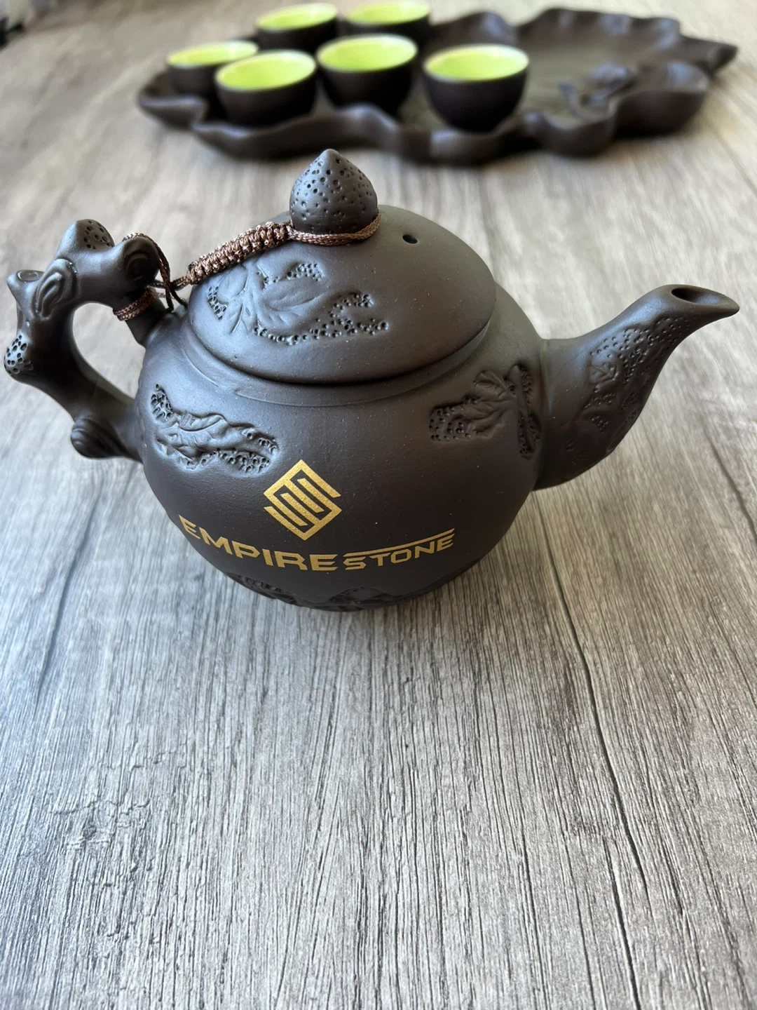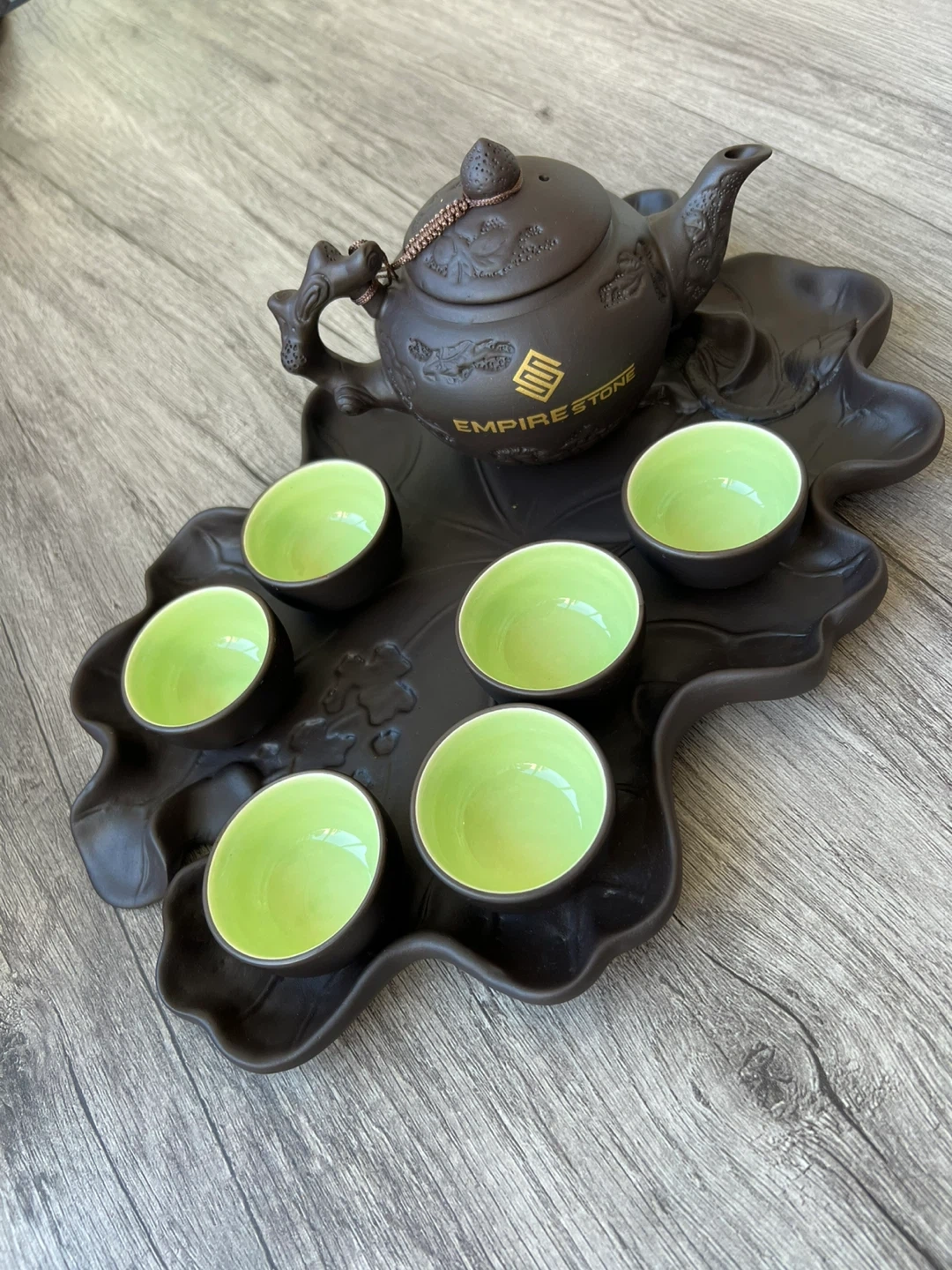 This is a beautiful Empire Stone tea set. It comes with a teapot and six matching cups. Perfect for tea lovers!