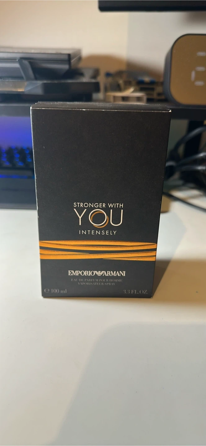 10Selling a bottle of Emporio Armani Stronger With You Intensely. It's a 100ml bottle and comes with the original box. The fragrance is a warm and inviting scent, perfect for everyday wear or winter time used not a lot