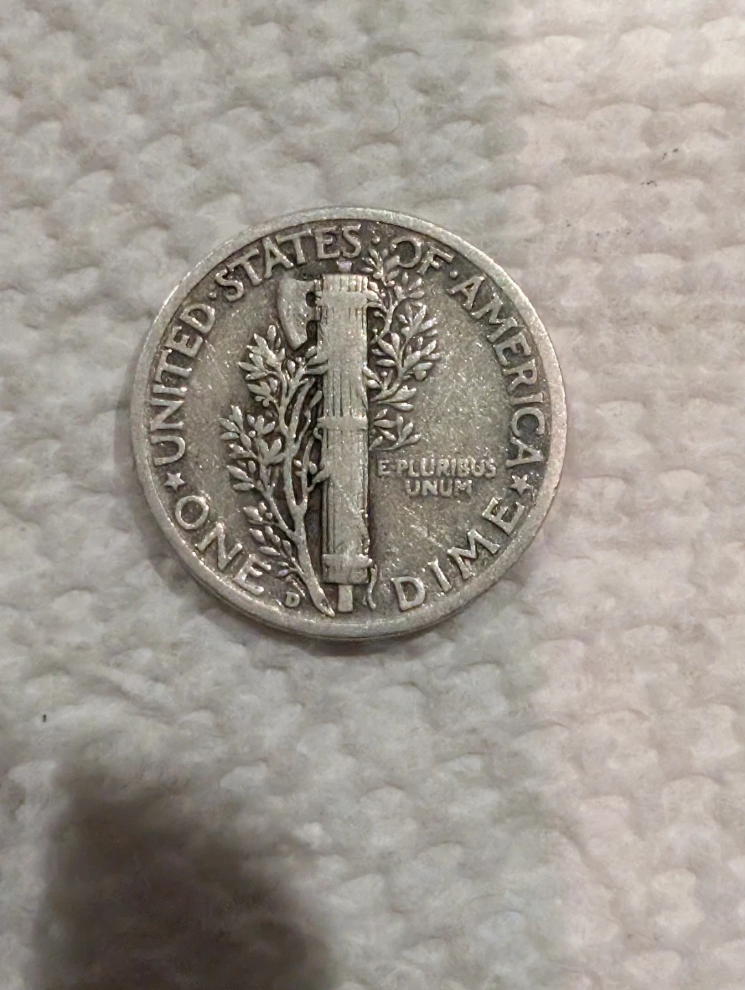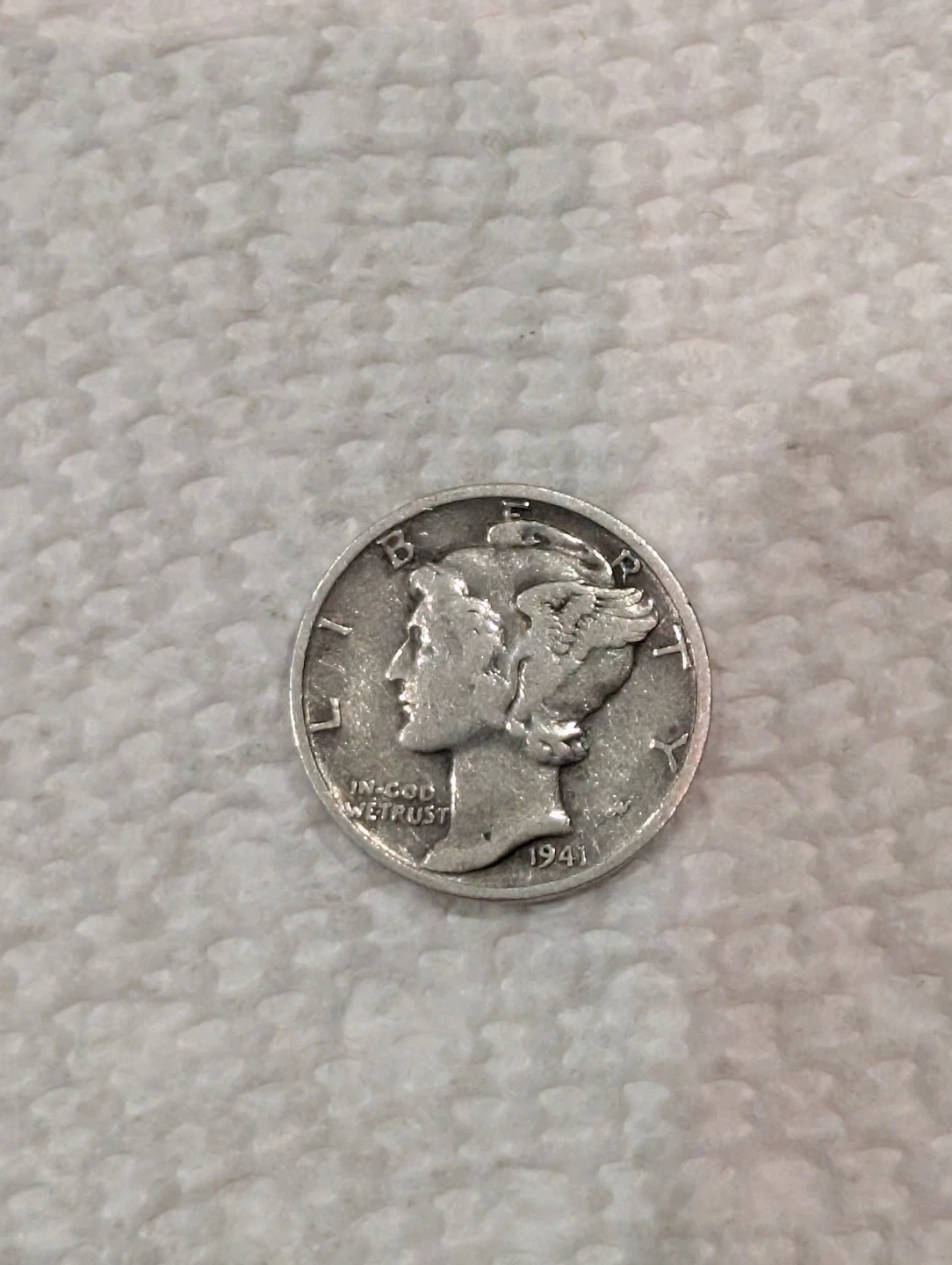 This is a 1941- D Silver Mercury dime. It's a 90% silver weight 2.5 grams coin mint in Denver. This coin is a classic collectible for numismatists!