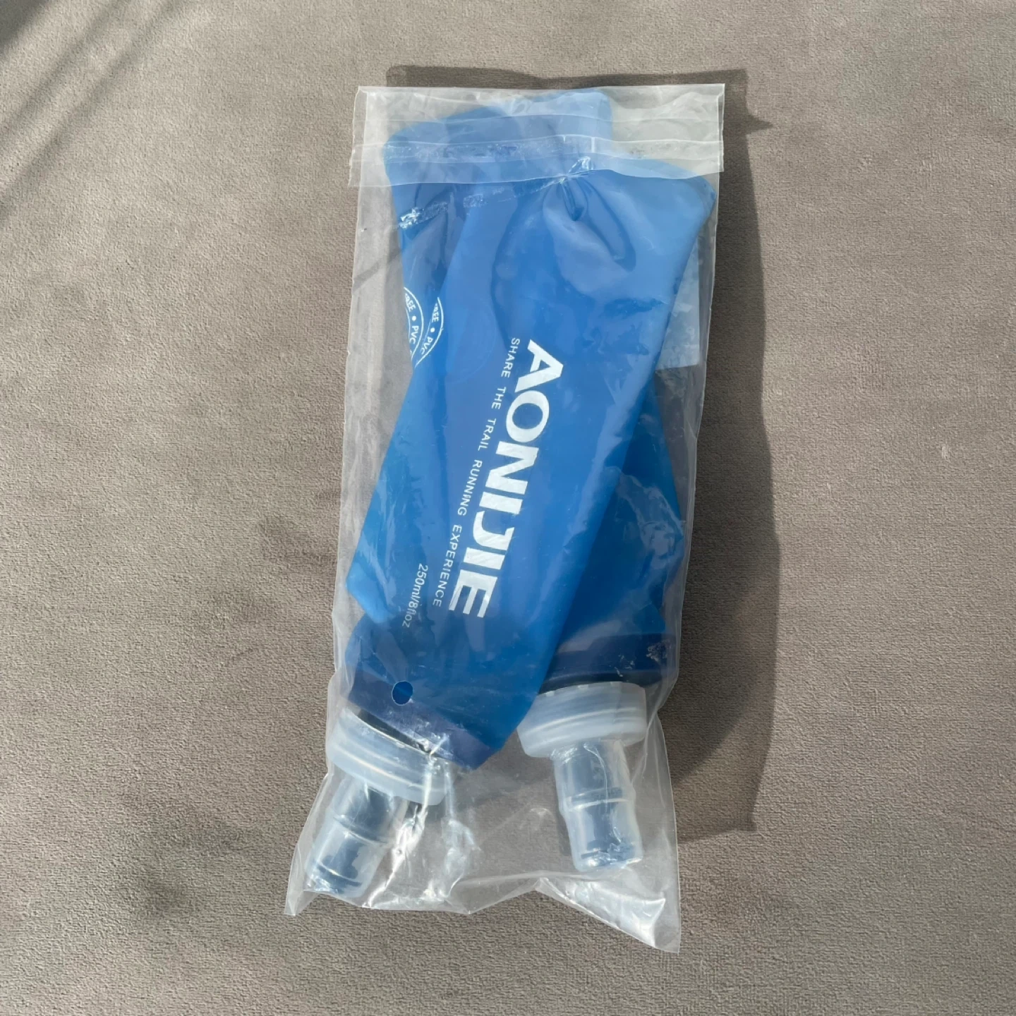 AONIJIE soft flasks, perfect for running or camping. Each flask holds 250ml (8oz) and is designed for convenience. They're made of a flexible, durable material.