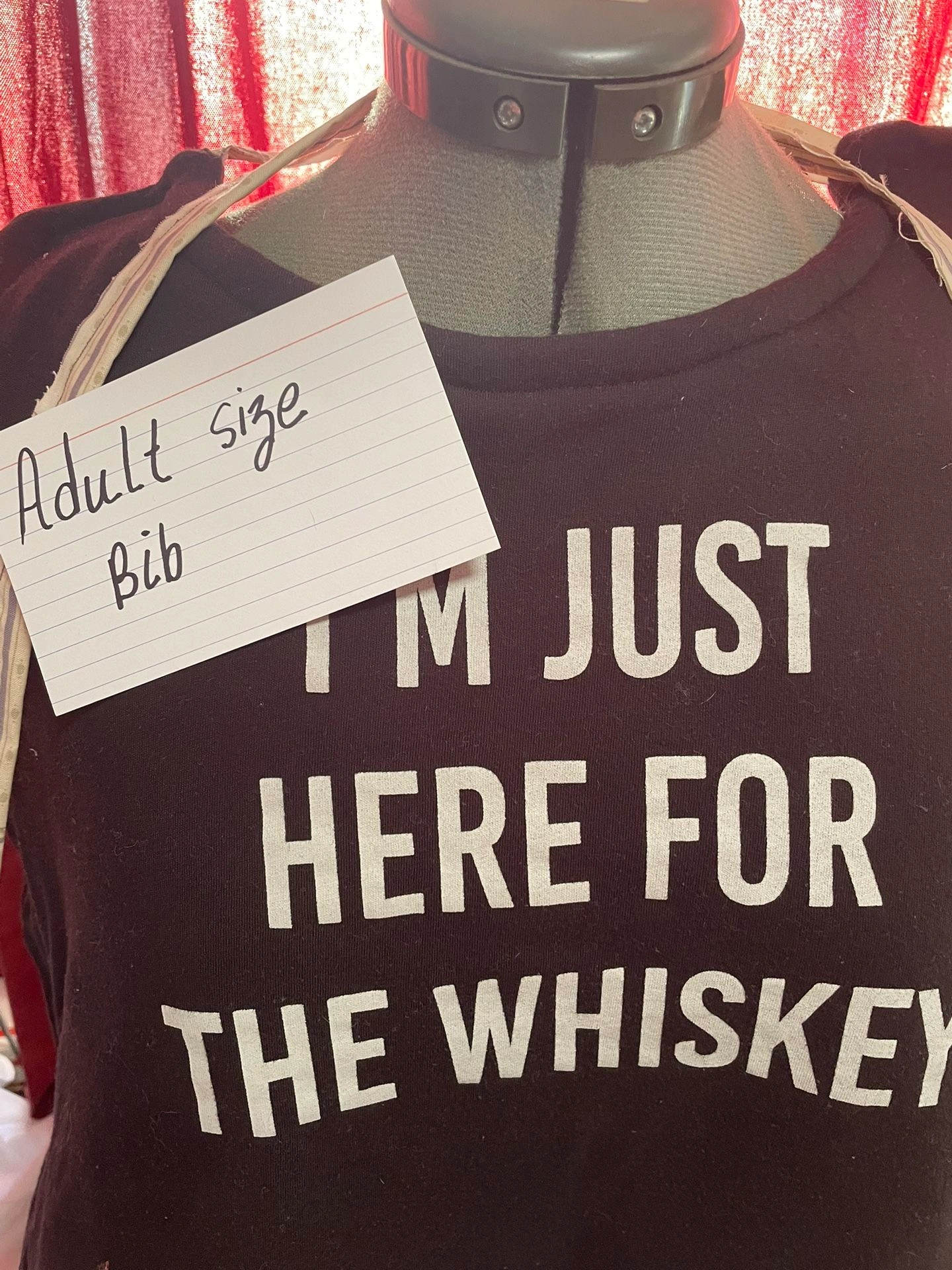 Buy & SellAdult Size Bib Novelty Whiskey Mealtime Clothing ProtectionAdult Size Bib Novelty Whiskey Mealtime Clothing Protection$15Adult size bib. Clothing protection with dignity and humor. Approximately 24 by 28 inches. Pick up in Niles Illinois.WHERE TO MEETShermer Road & Dempster StreetView MapSELLERverifiedNancyNiles1476 reviews0 chats·0 favorites·2 viewsSEND CHAT TO SELLERHi Nancy! I’m interested in your listing.Hi Nancy! I’m interested in your listing.Get the Karrot app to chatSign In to chat