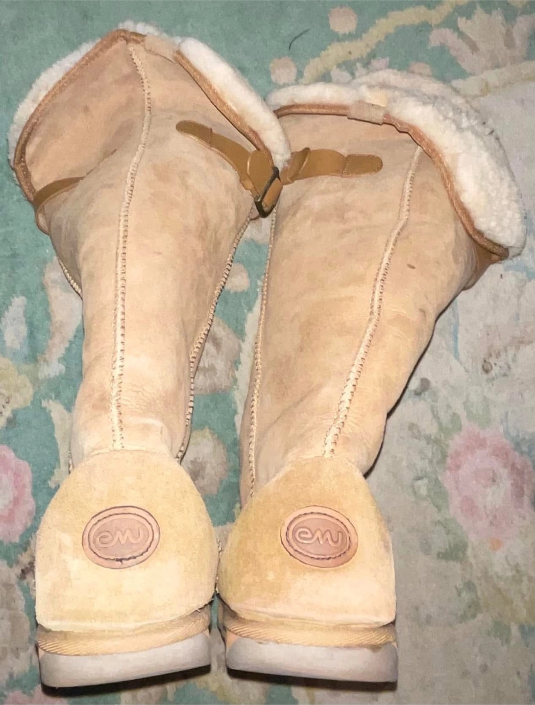 Emu Boots Preloved excellent condition Size 9 Colour chestnut Worn 2 ways foldover or without folding over Adjustable buckle Sheepskin inside $10 firm All sales are final no refunds or exchanges Pickup only shipping available at buyers expense