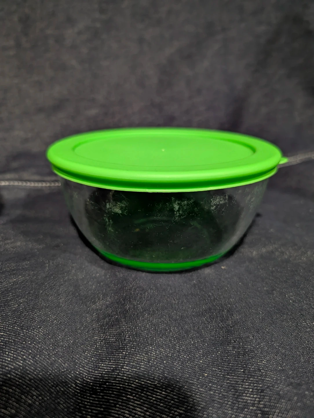 This set includes a white ceramic ramekin dish with ribbed sides and a clear glass mixing bowl with a green lid. The ramekin measures approximately 4 inches in diameter and 2 inches tall. The glass bowl is approximately 7 inches in diameter and 3.5 inches tall. These are great for baking or food prep! Sold as a set.